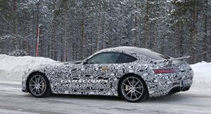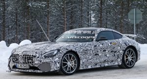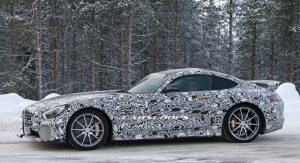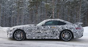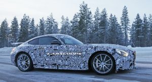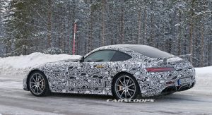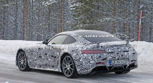 Well, it’s going to need it as the biturbo 4.0-litre V8 is expected to produce around 550PS (542hp), up from the 503hp the normal AMG GT S makes. This will allow for a 0-62mph time of just over 3.0 seconds.