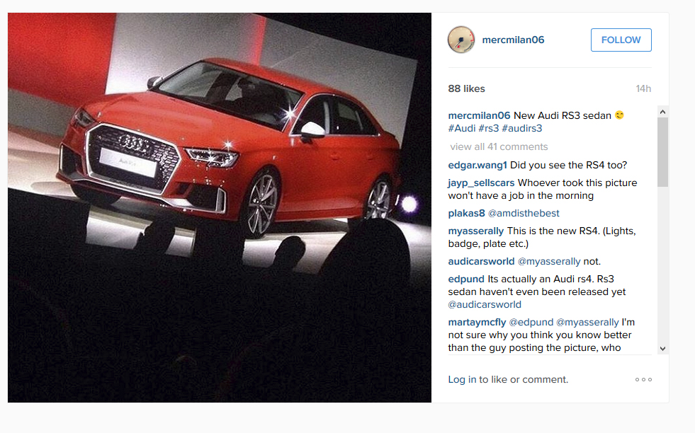 * Update: a second photo has appeared on Instagram which confirms it’s the RS3 sedan