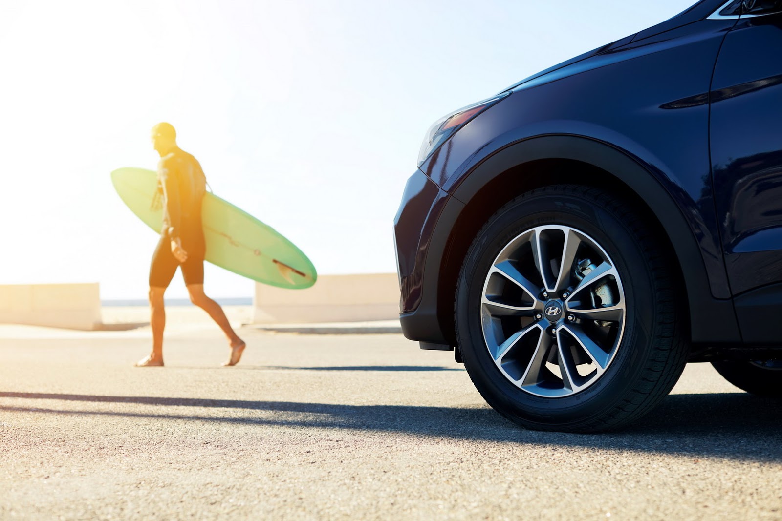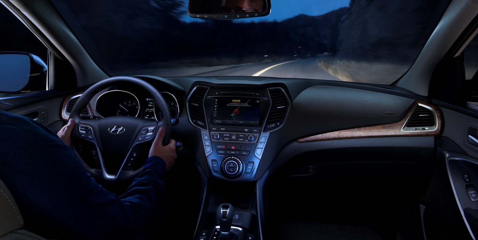 The new Hyundai Santa Fe and Santa Fe Sport continues to offer a long list of standard equipment which includes a Rearview Camera, automatic on/off headlights, remote keyless entry with alarm, bodycolor heated exterior power mirrors with driver’s blind spot mirror, LED headlight accents, daytime running lights, steering-wheel-mounted audio and cruise control and Bluetooth hands-free smartphone system.