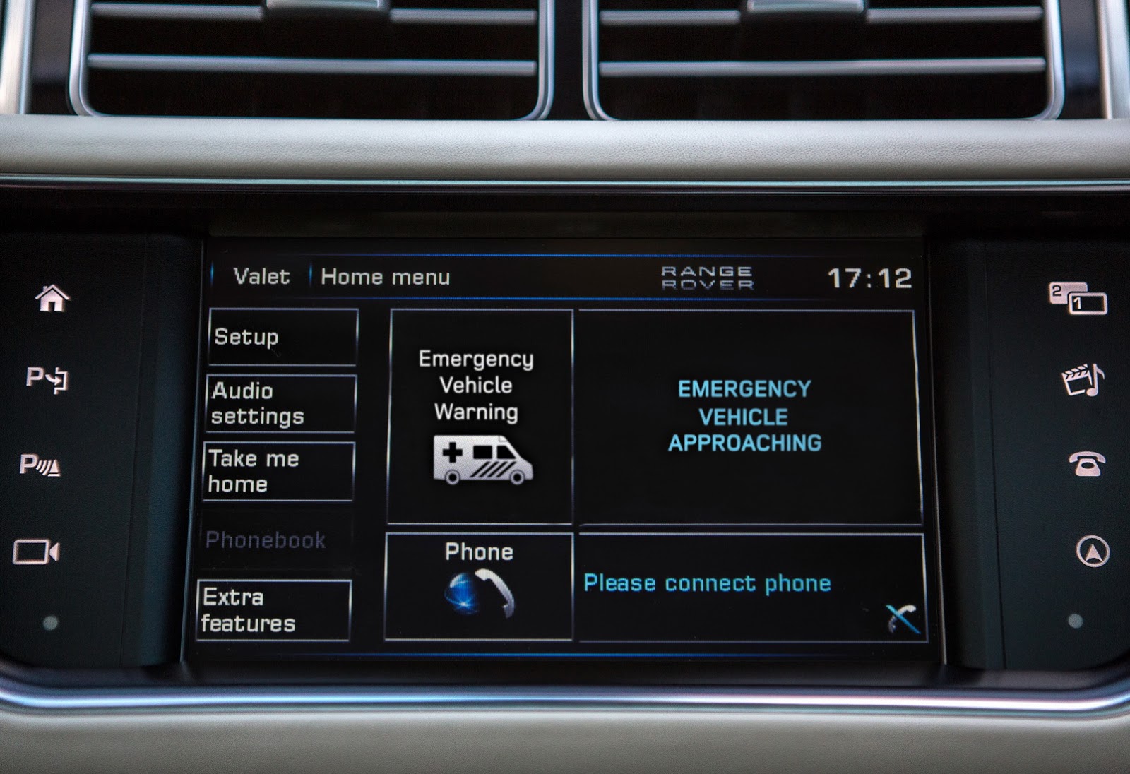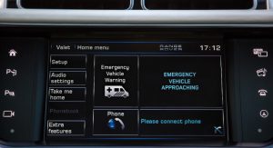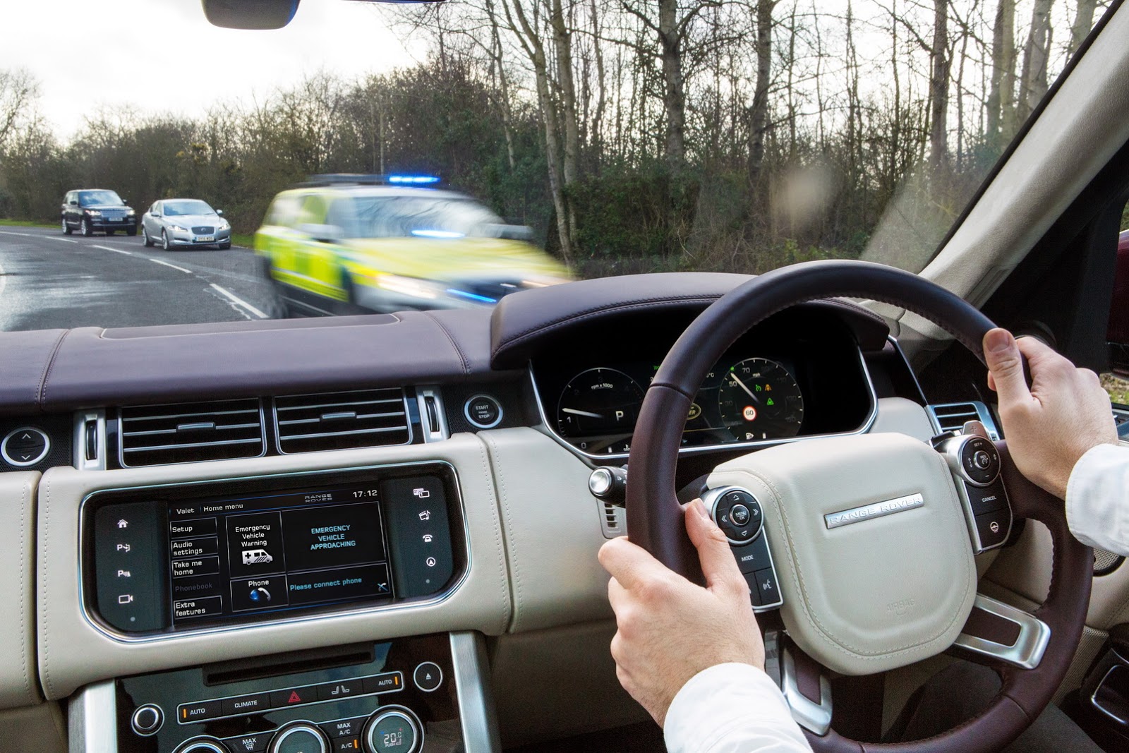 This is where JLR’s Emergency Vehicle Warning system would come in and identify that a connected ambulance, fire engine or police car is approaching, allowing the driver to be aware of these things long before flashing lights and sirens become audible or visible.