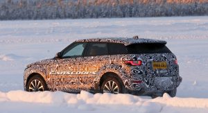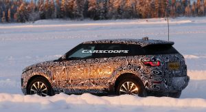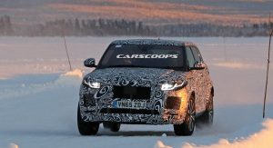 The camouflaged prototype looks a lot like a Range Rover Evoque, but that is just a trick to cover up the development of the “baby” SUV.