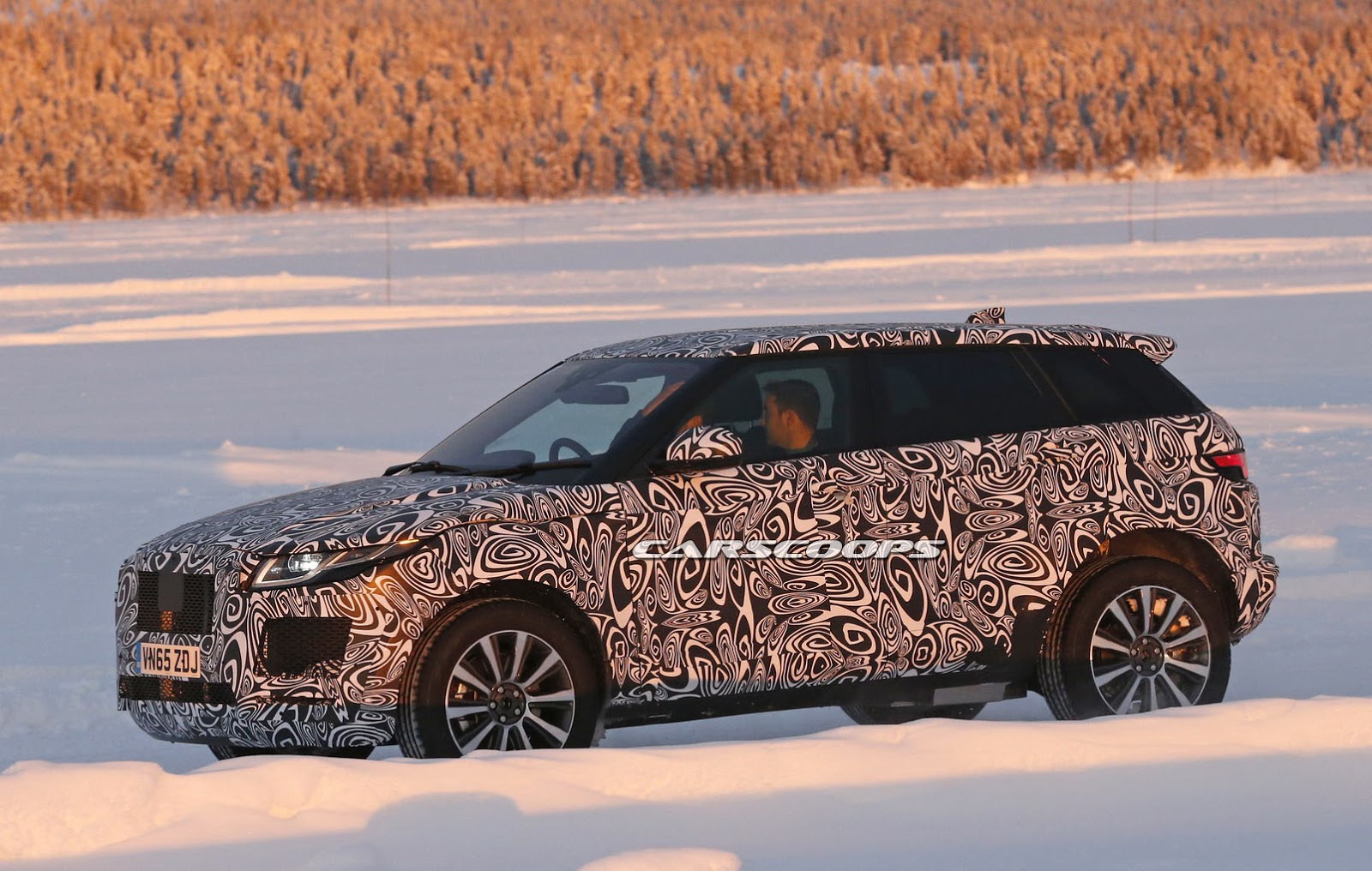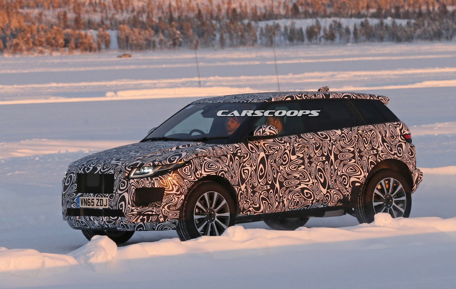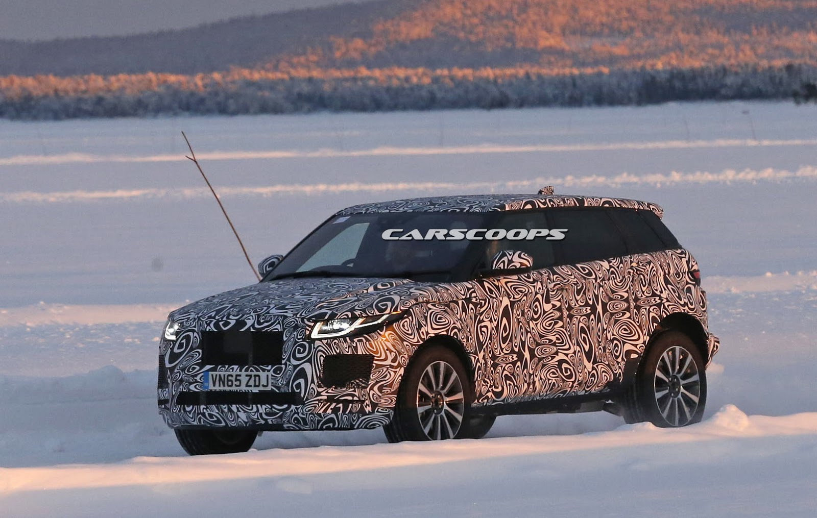 The camouflaged prototype looks a lot like a Range Rover Evoque, but that is just a trick to cover up the development of the “baby” SUV.