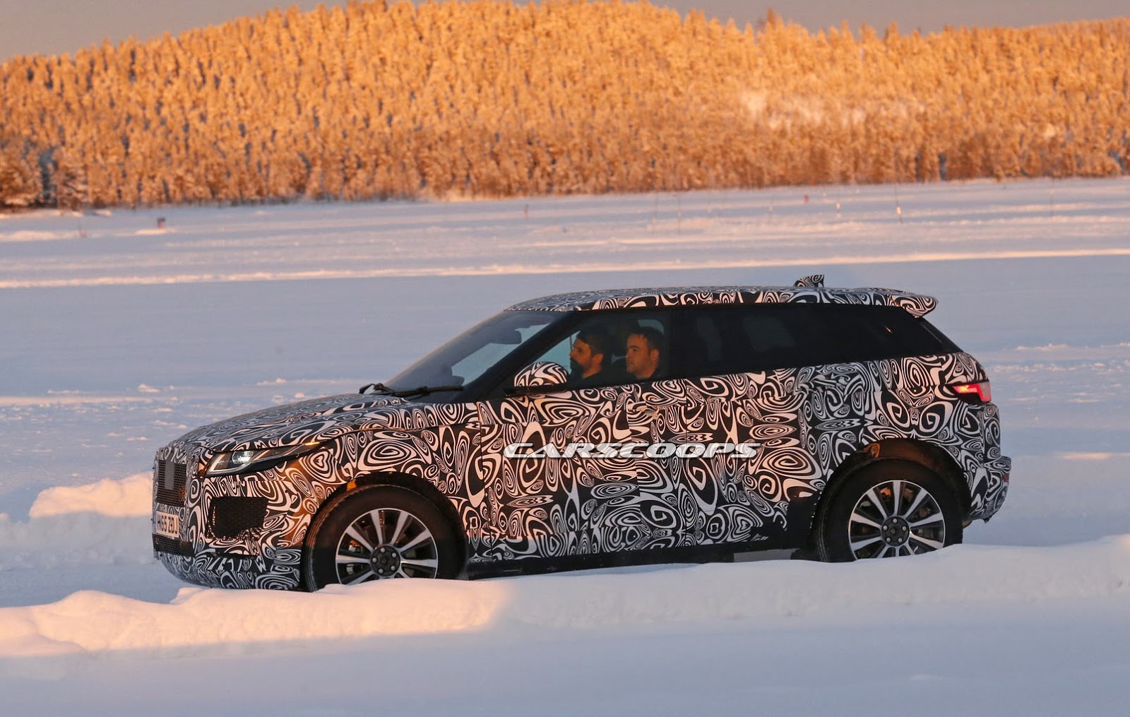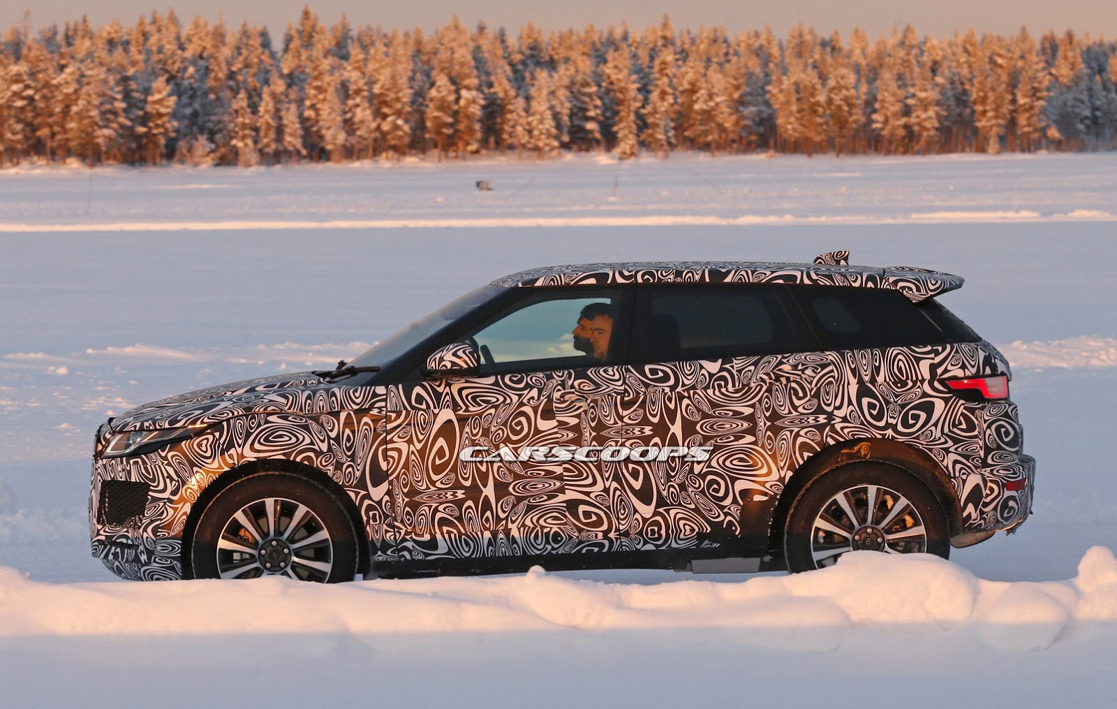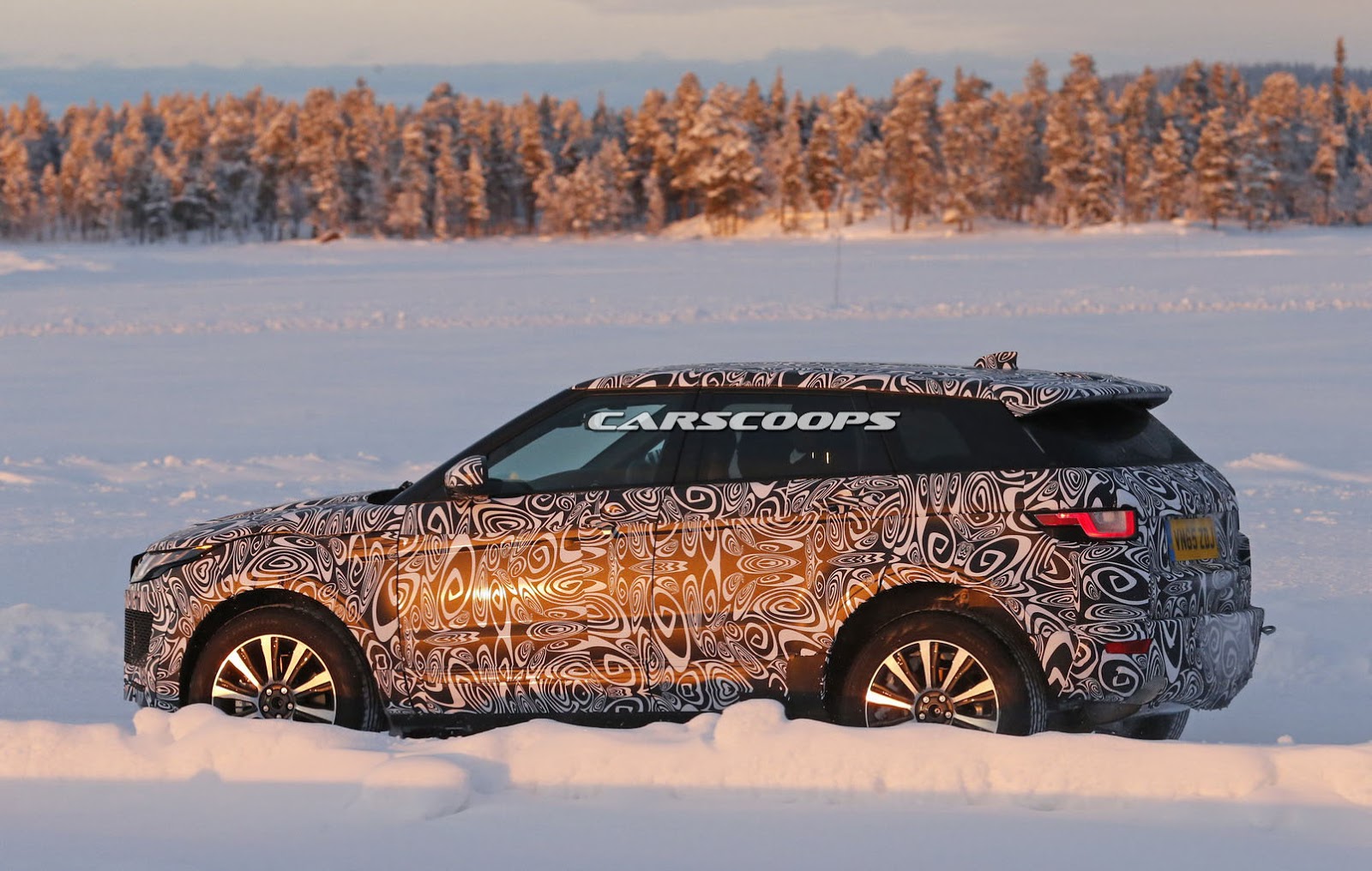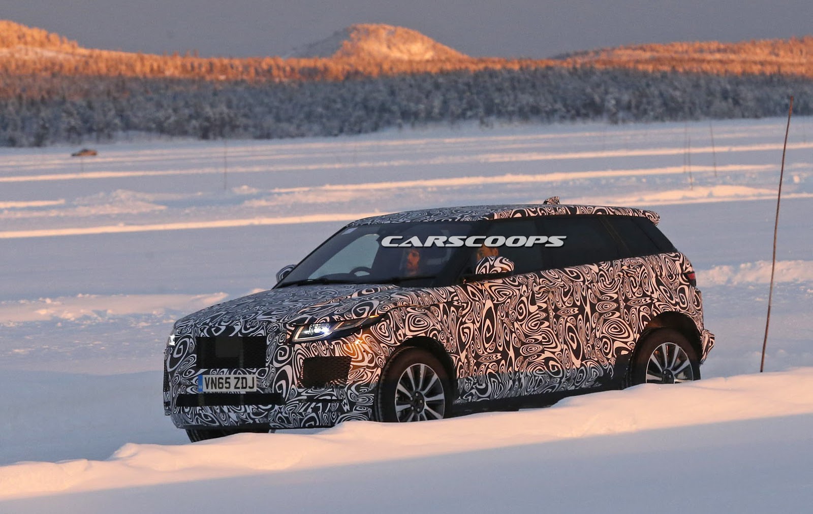 The camouflaged prototype looks a lot like a Range Rover Evoque, but that is just a trick to cover up the development of the “baby” SUV.