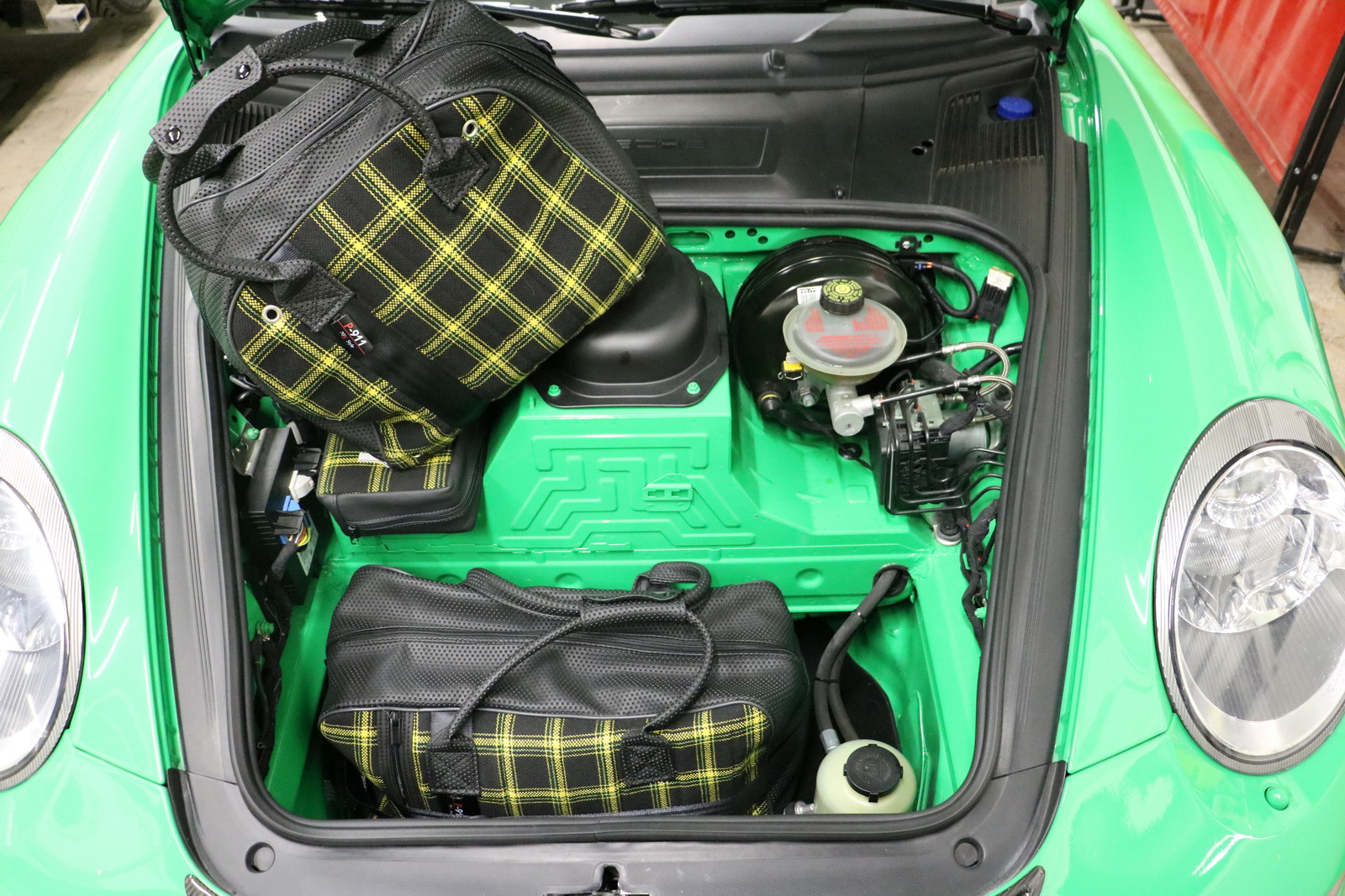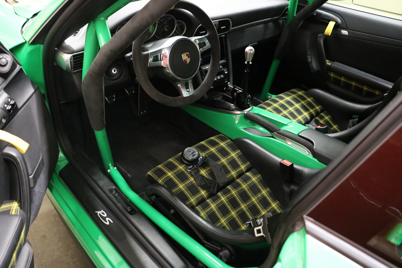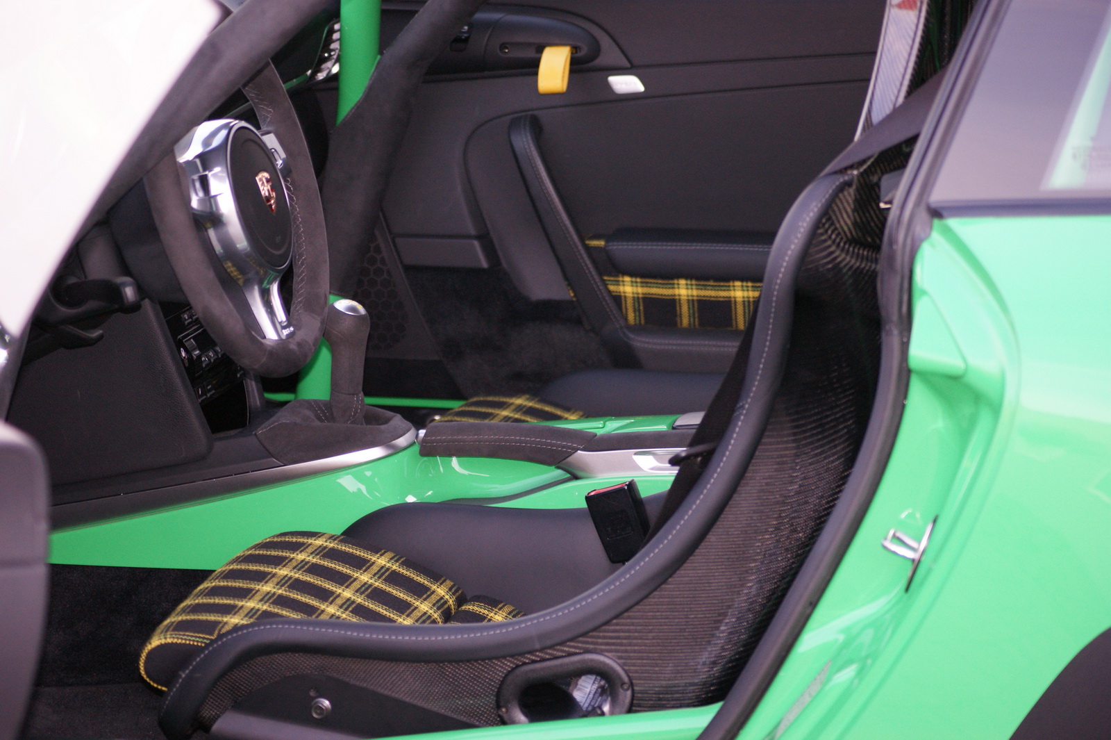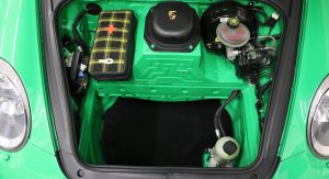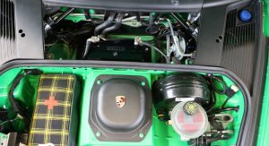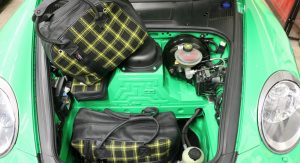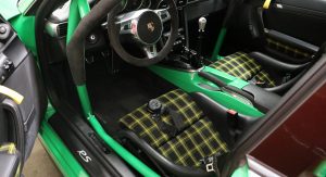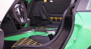 The interior, on the other hand, received a retro-style checkered fabric upholstery and a steering wheel taken off 4-litre GT3 variant. Completing the customizations are a travel and helmet bag, matching the new interior.