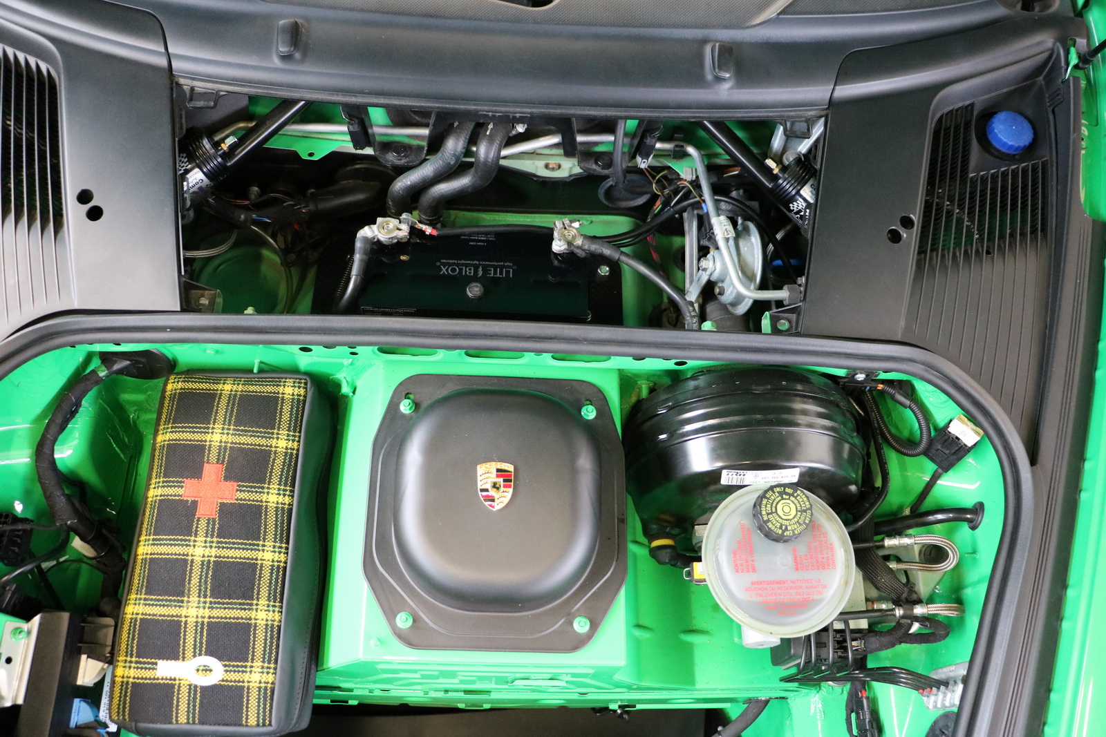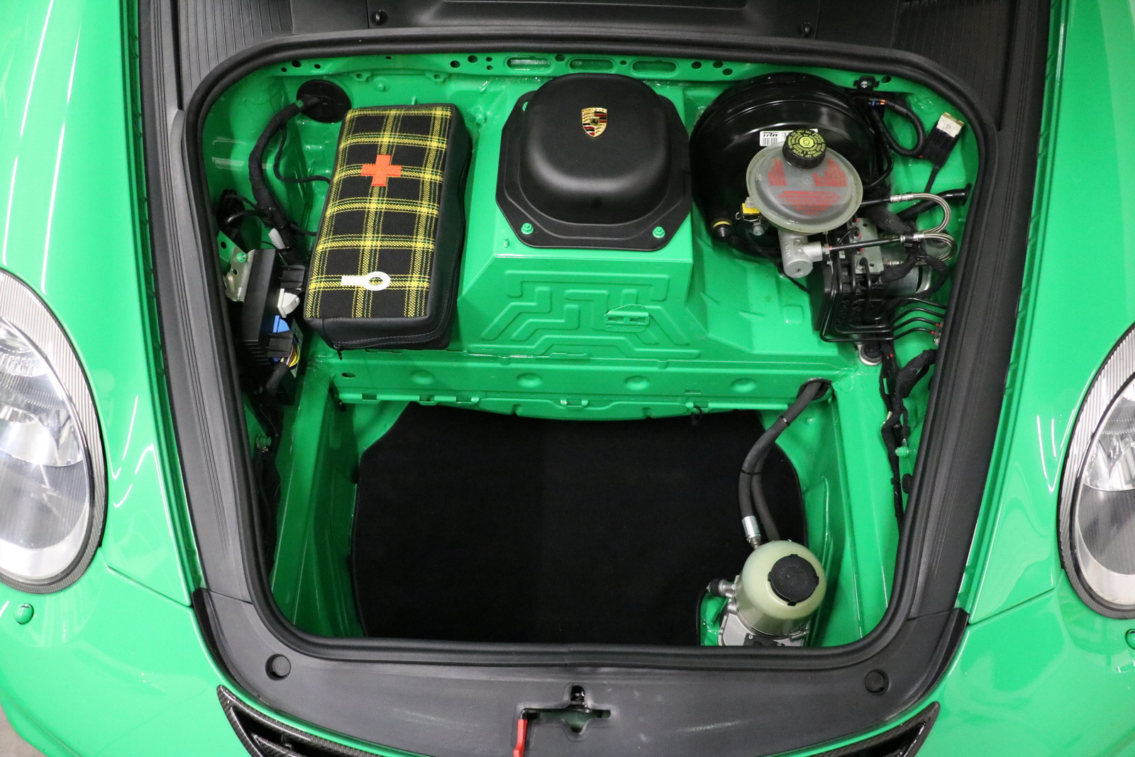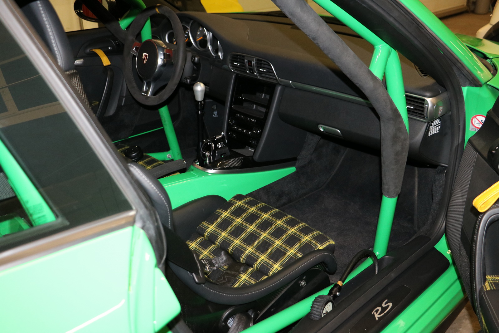 The interior, on the other hand, received a retro-style checkered fabric upholstery and a steering wheel taken off 4-litre GT3 variant. Completing the customizations are a travel and helmet bag, matching the new interior.