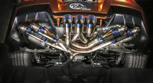 Beyond the bodykit, one of the car’s most interesting elements is its unique exhaust system. Created in-house by Kuhl, the exhaust consists of three massive blue-tipped central tailpipes which when viewed at from below, are true pieces of art.