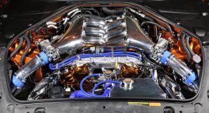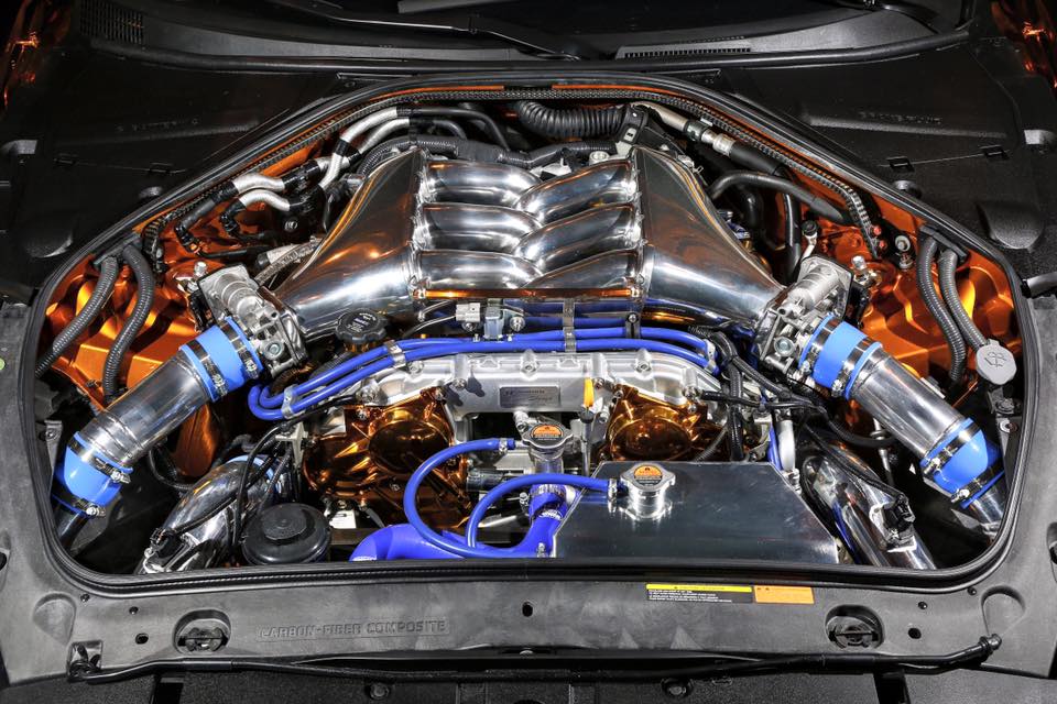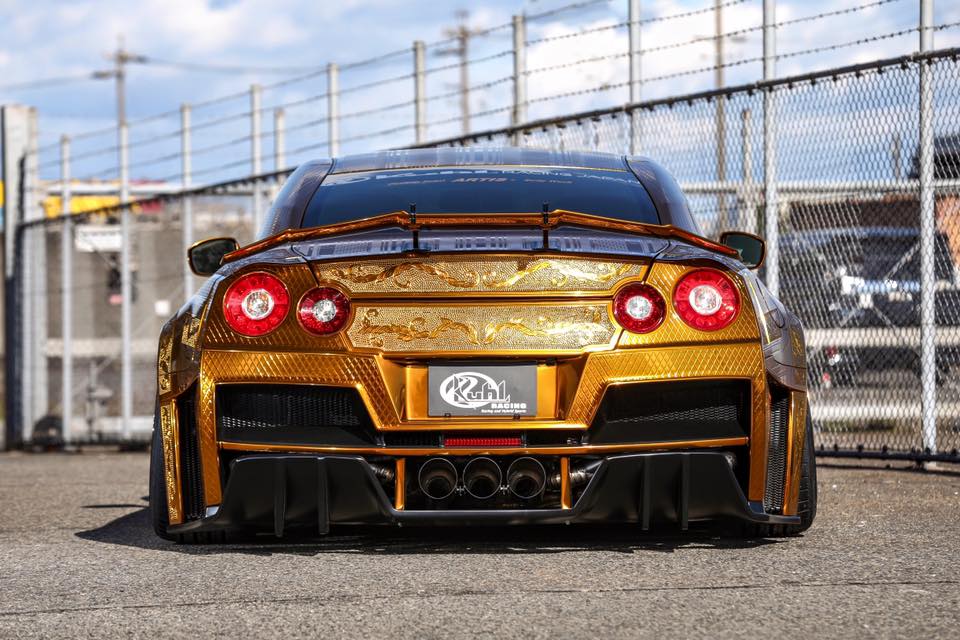 Another notable component of the car is the customised twin-turbo 3.8-liter V6 engine which has also been applied with a chrome gold finish. It looks so good that at Tokyo, Kuhl finished another GT-R engine in gold chrome and put it on display.