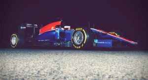 Manor’s new MRT05 Formula One race car was unveiled today, featuring a new design, a red, blue and white color combo, and a powerful Mercedes PU106C Hybrid engine.