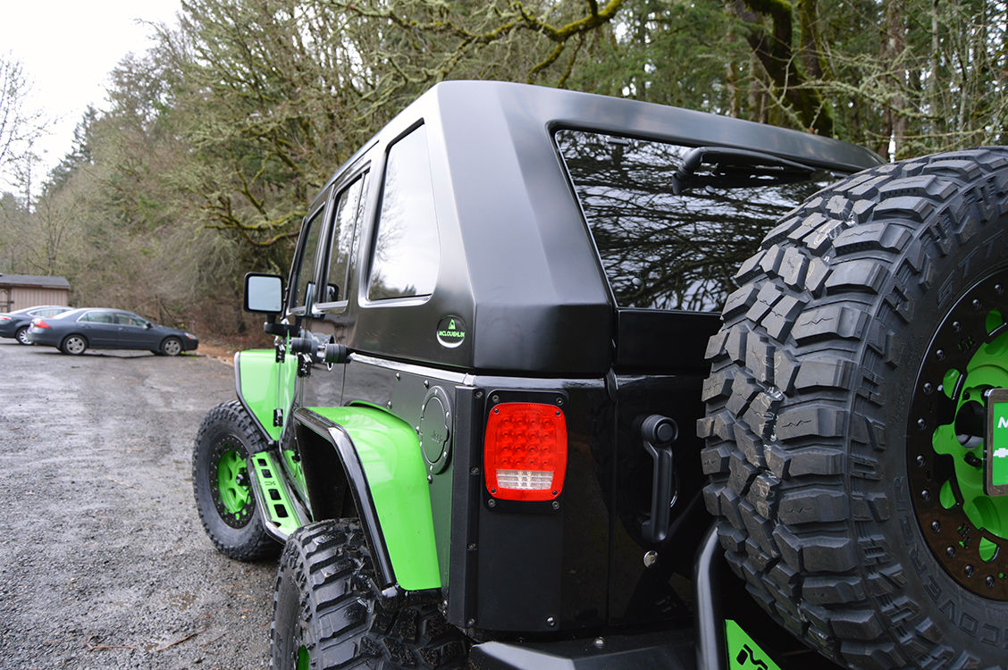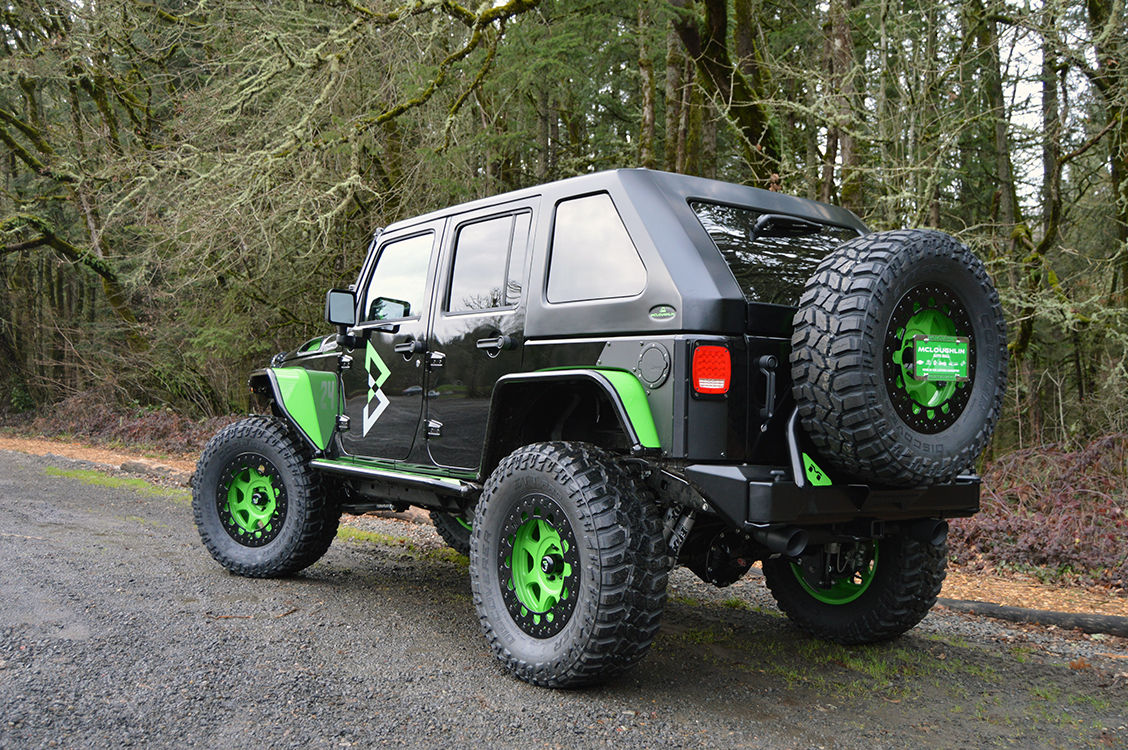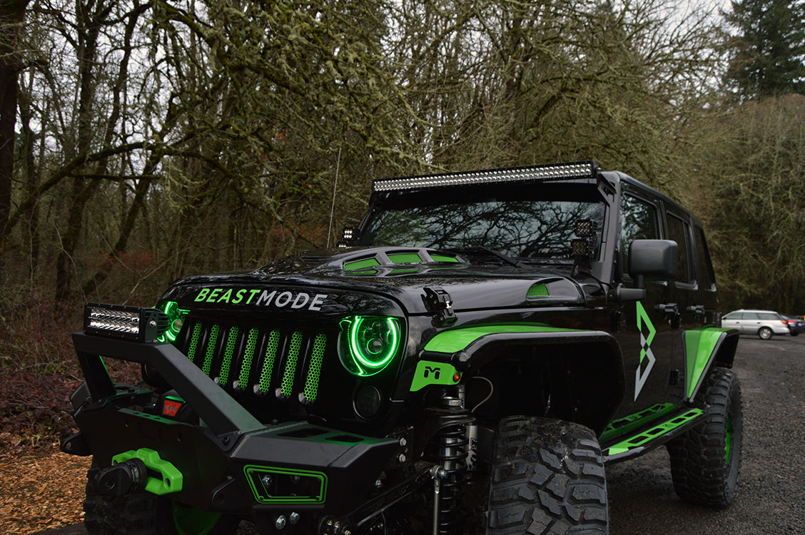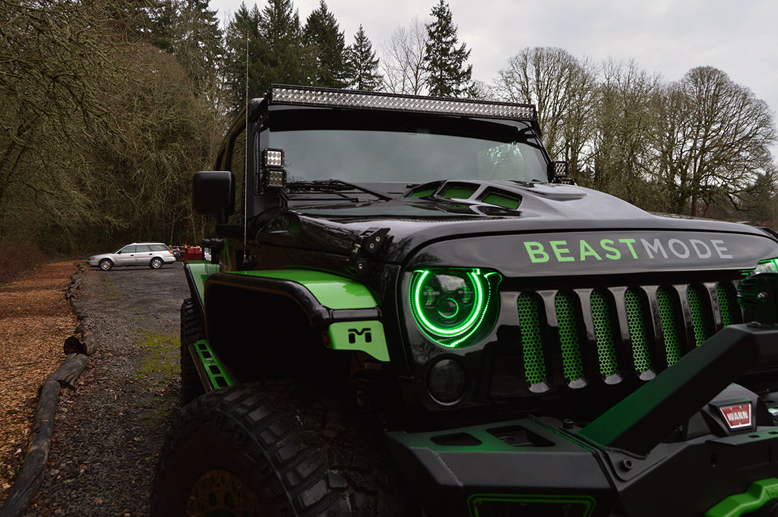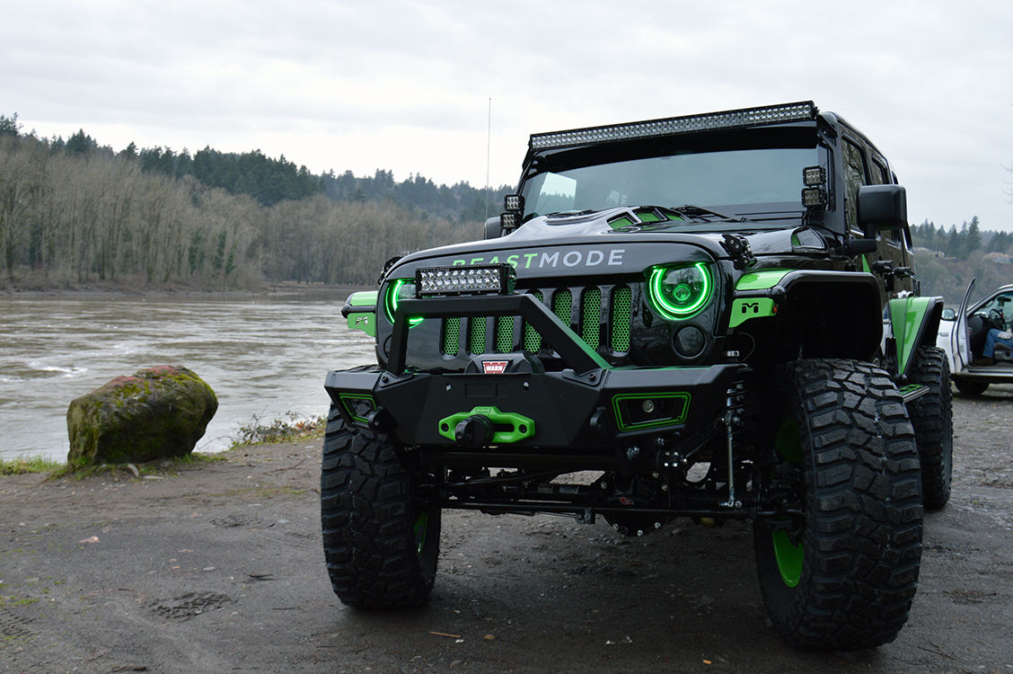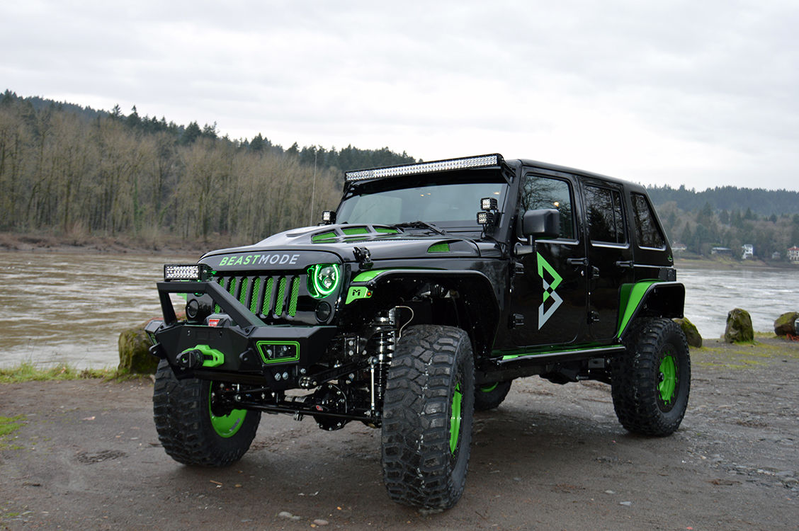 As for the product itself, we do know it cost no more than $35,020 before it was seriously modified by the Custom & Performance Vehicle Division at McLoughlin Chrysler Jeep in Portland, OR. The designers added a new grille, a mean-looking hood as well as angry green ‘halo’ headlights – among plenty of other things.