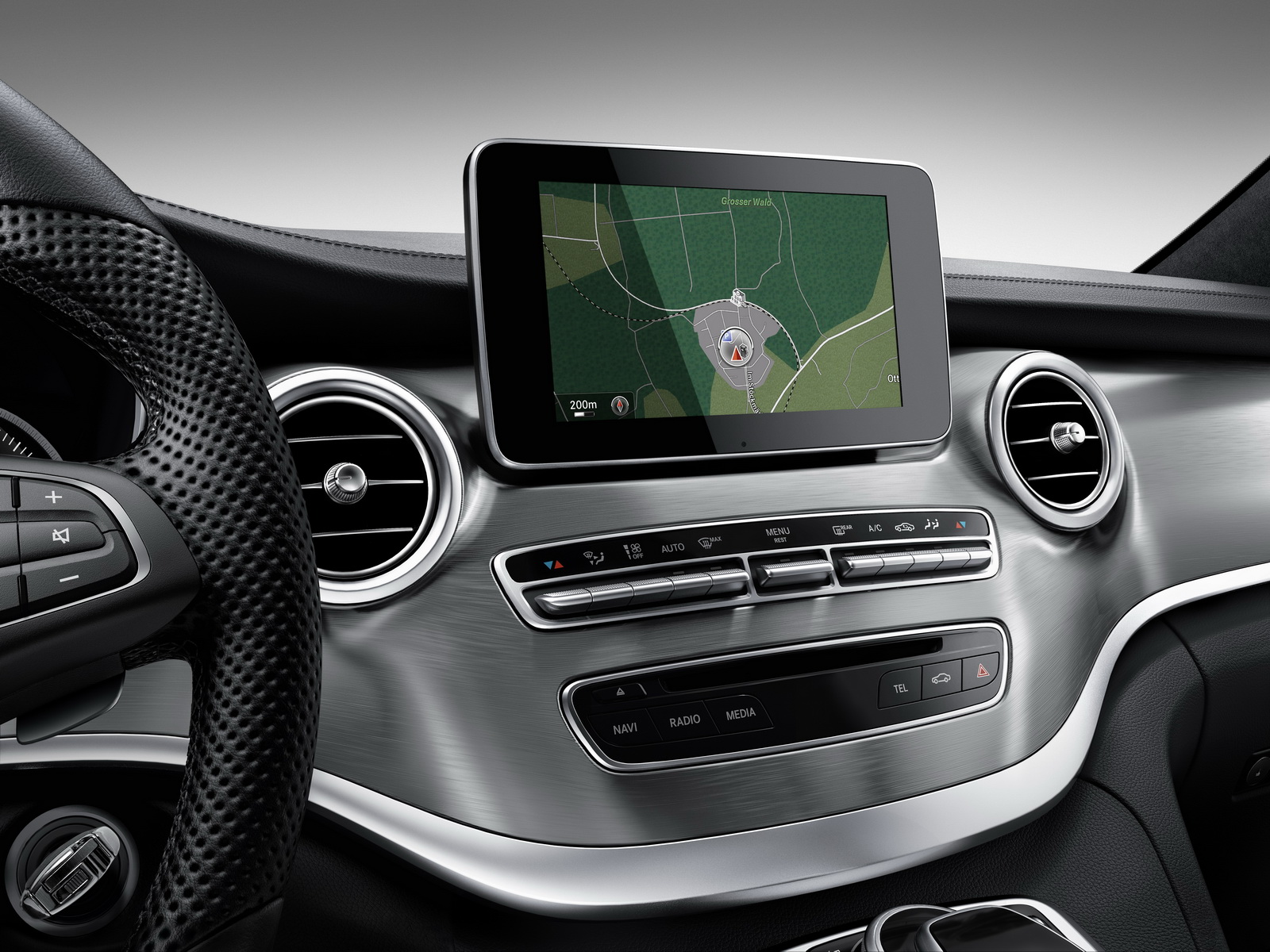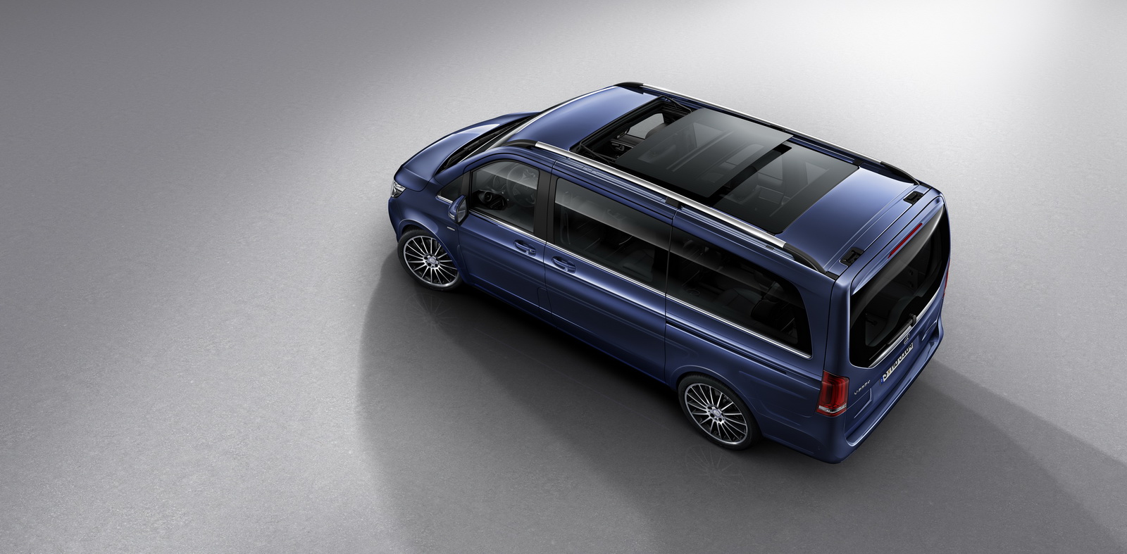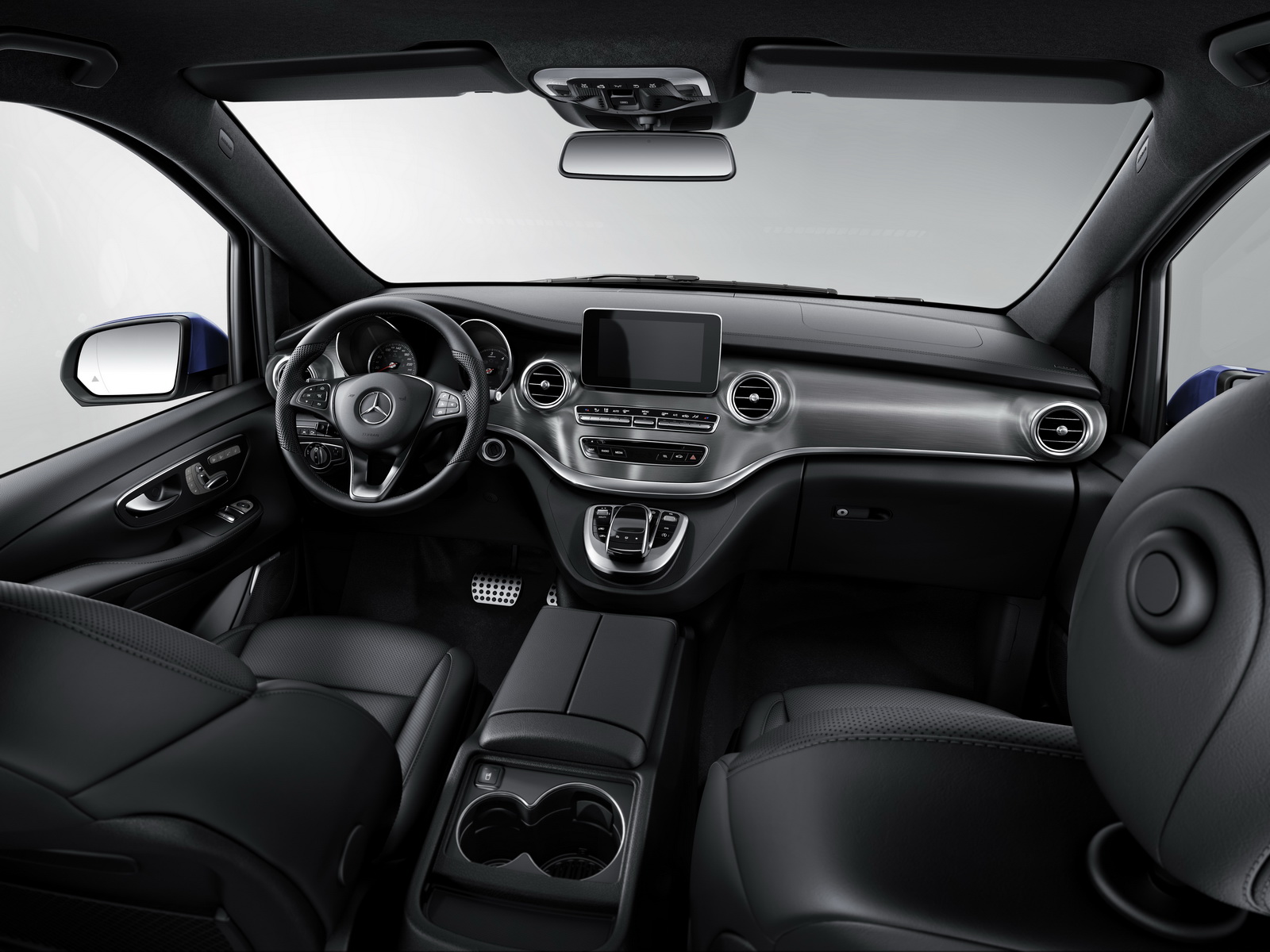 As optional extras for the rest of the V-Class range, Mercedes-Benz adds the panoramic sliding sunroof, large center console with refrigerated compartment and iPad holder for the backrest of the front seats. The AMG Line, available for the regular and Marco Polo models, adds newly styled front and rear aprons, additional spoiler lip, distinctive side sills and 19-inch AMG wheels.