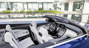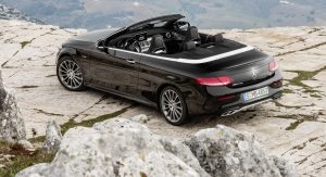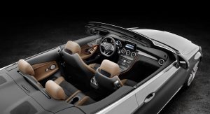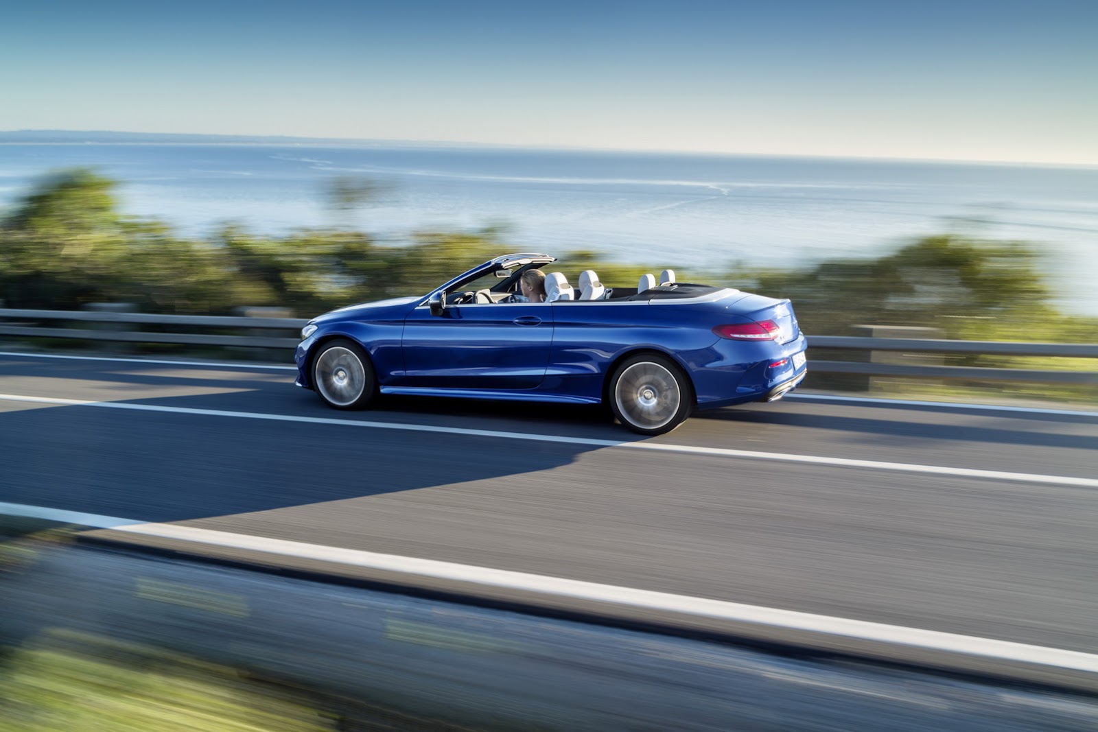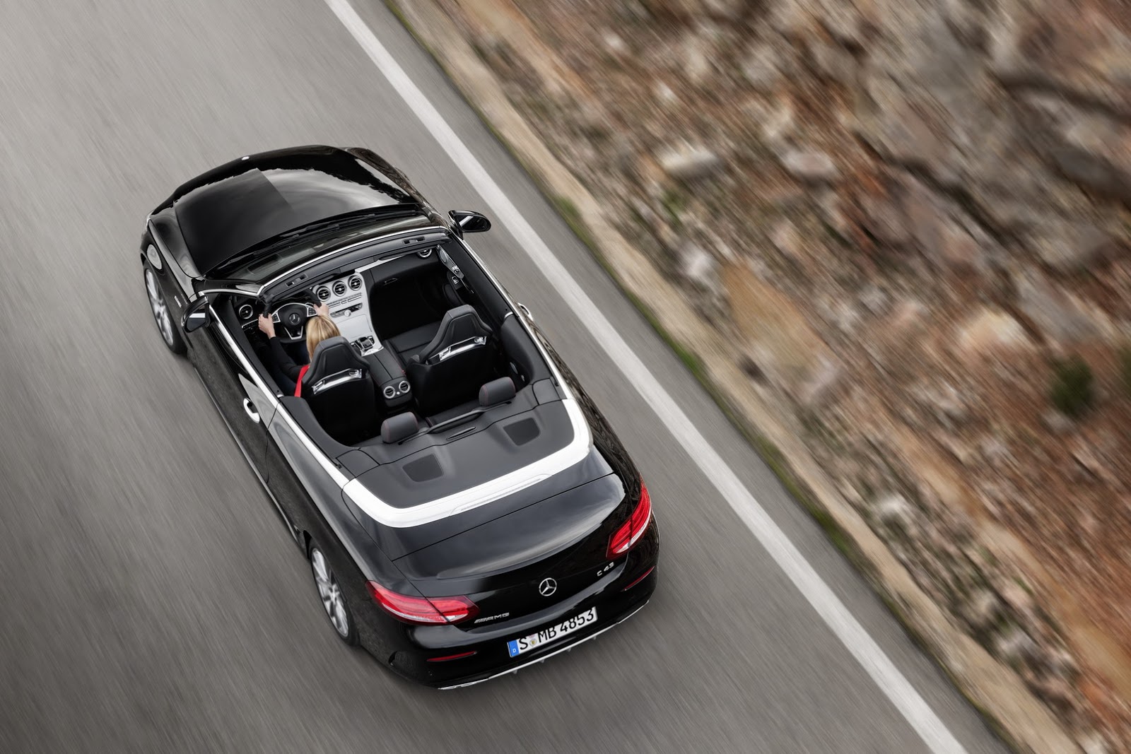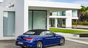 In European guise, the new C-Class Convertible will arrive in dealerships with a choice of six petrol engines, ranging from a 156PS (154hp) 1.6-liter turbo four for the C180, to a 367PS (362hp) 3.0-liter twin-turbo V6 for the C43 AMG 4MATIC.