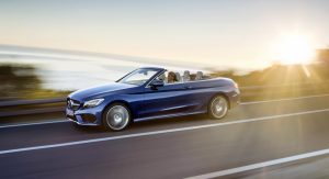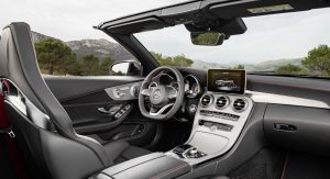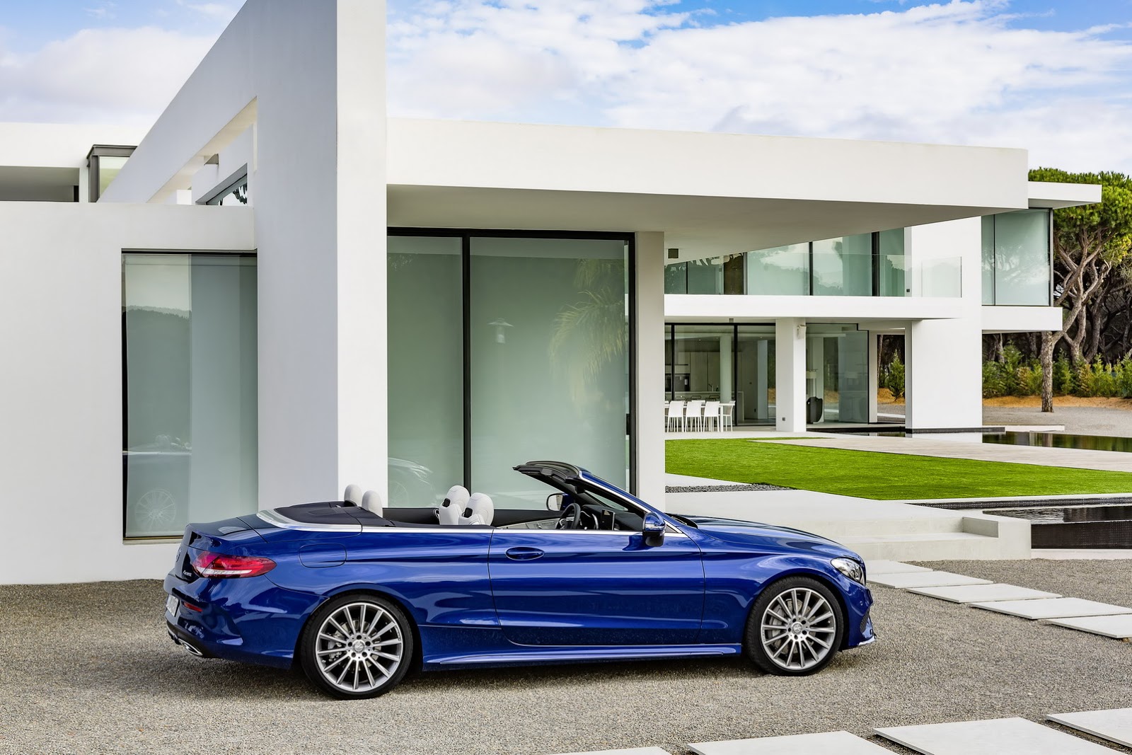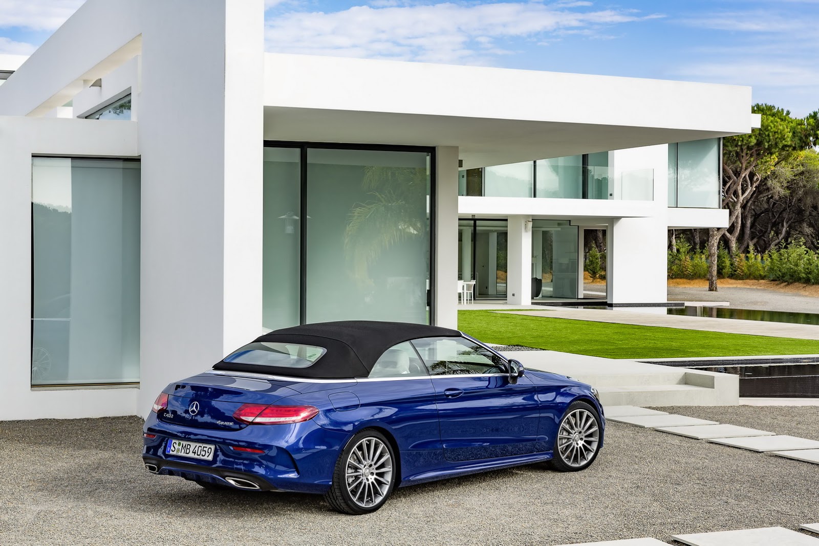 In North America, the C-Class Cabriolet will go on sale late this summer in two variants, the C300 with rear-wheel drive or 4MATIC all-wheel drive, both powered by a 241hp 2.0-liter turbo four, while in the fall, Mercedes will release the C43 AMG with a 362hp 3.0-liter bi-turbo V6. All US models will be sold with a standard nine-speed automatic.