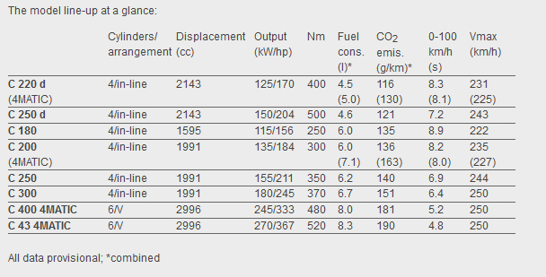 At launch, there will be two 2.2-liter four-cylinder diesel models, the 170PS (168hp) C220 d and the 204PS (201hp) C250 d.