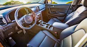 The 240hp Sportage SX Turbo range-topper costs $32,500. Adding to the EX Technology Package, the model brings larger front brakes, sport-tuned suspension, 19-inch wheels, dual exhaust pipes, front and rear metal-look skid plates, satin exterior trim, unique grille design, bi-xenon HID headlights and LED fog lights and taillights. Inside it has a flat-bottomed steering wheel, gloss black trim, metal pedals, dashboard stitching and a choice of five interior colors.