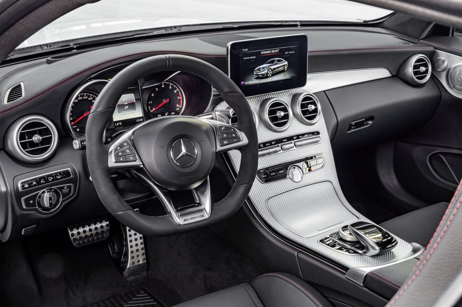 The Germans say that they have beefed up the chassis with many components from the C63 AMG Coupe, including the three-stage RIDE CONTROL sport suspension with adaptive variable damping, the steering knuckles, load-bearing joints and the elastokinematic adjustments to the links. There’s also a larger braking system with internally ventilated compound brake discs, perforated at the front with a diameter of 14.2-in., and with a diameter of 12.6-in. at the rear