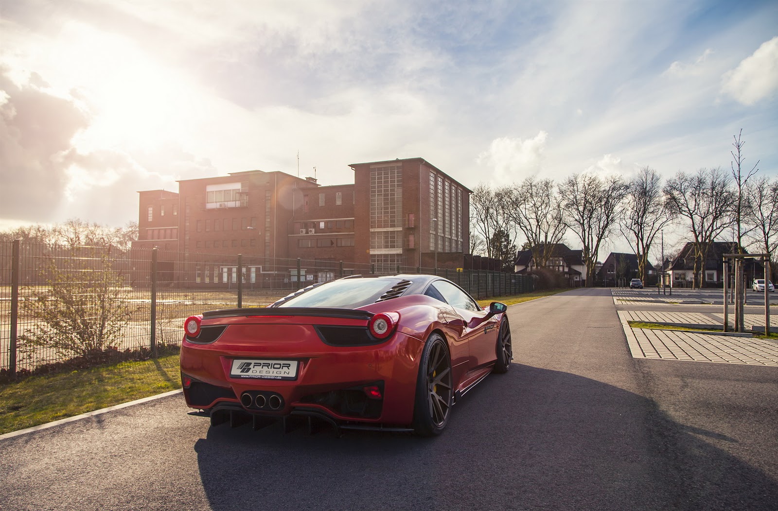 After seeing what Prior Design could do to a white Ferrari 458 back in September, this time around we’re looking at a less wide, red & black themed model.