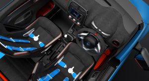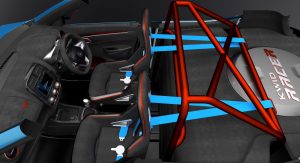 Inside it features bucket seats, four-point harness, roll cage, a totem console in the center of the dashboard that displays telemetry data, digital rev counter along with Alcantara seats and aluminum and carbon trims.
