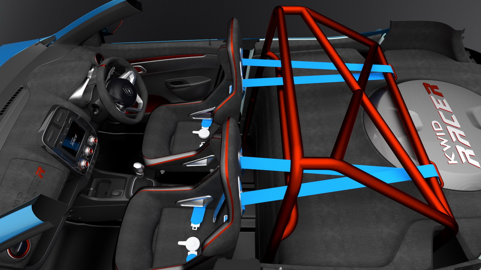Renault’s second variant “is more at home on the asphalt of race circuits” and it was inevitably called the Kwid Racer. It has wide air intakes, honed aerodynamics, new spoilers, diffuser and 18-inch alloy wheels, wrapped in low-profile tires.