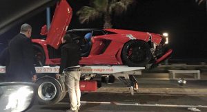 The incident apparently took place in Casablanca, Morocco, where this this Lamborghini Aventador Roadster ended up in a sorry state.