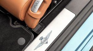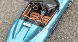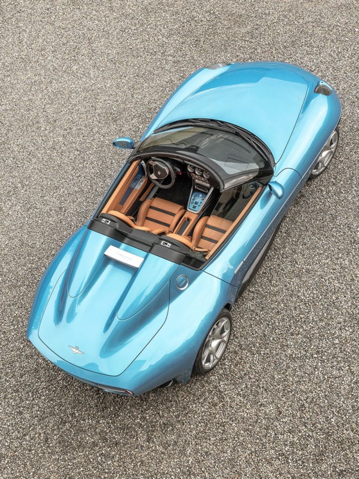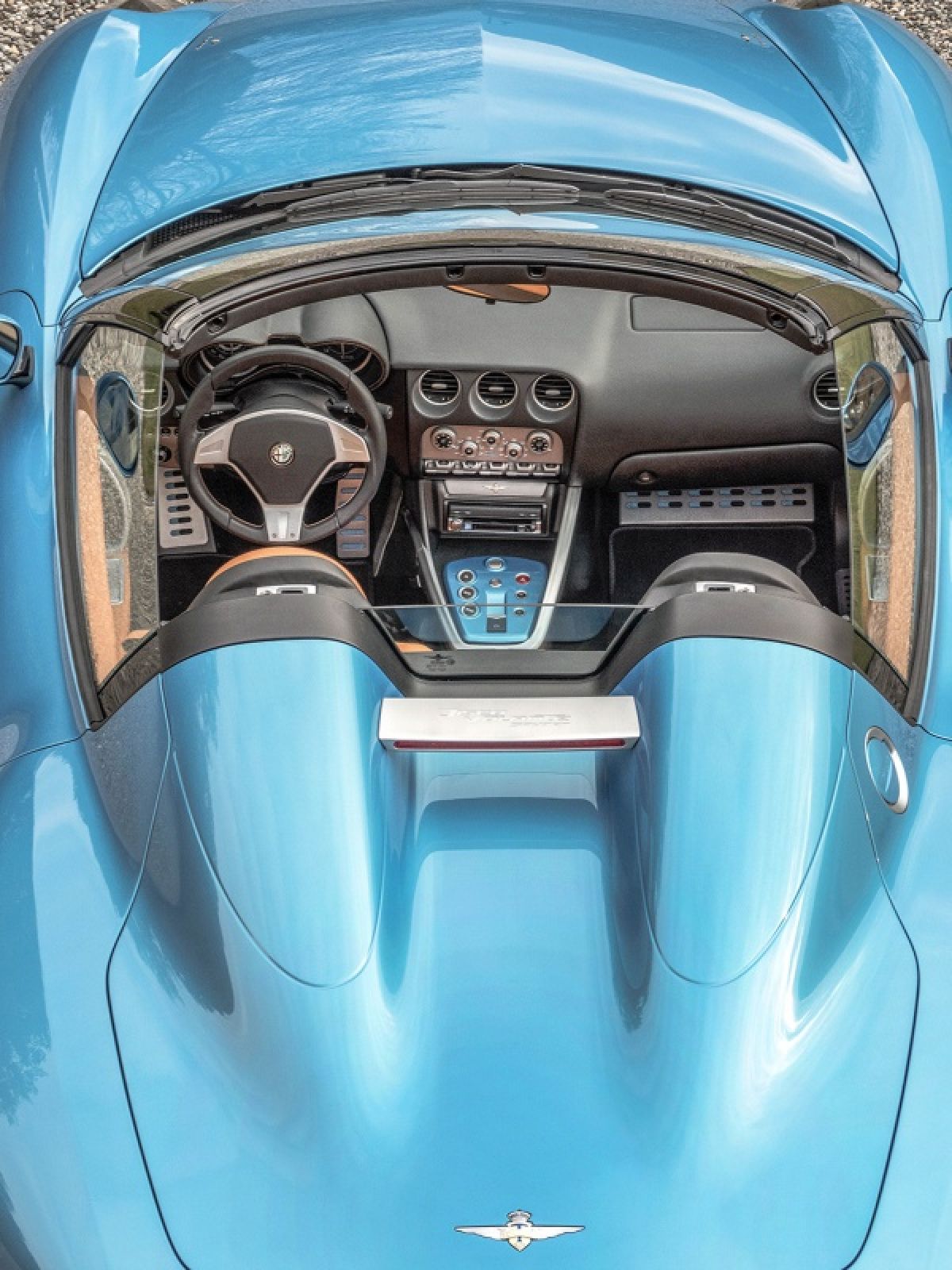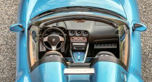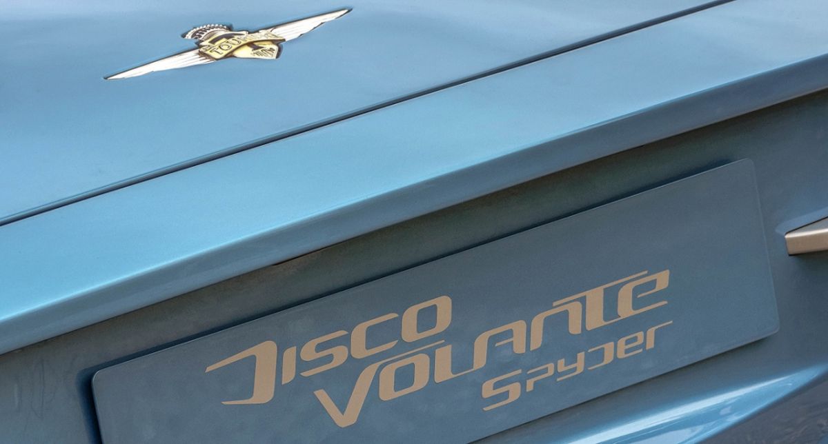 Besides the open-top design, the new Disco Volante Spider is painted in Blu Ceruleo (Sky Blue) and its interior is upholstered in beige/black Connolly leather.