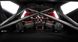 Aside from the livery, Pirelli P Zero tires, extra carbon bits and a massive rear wing, this car also comes with a pair of Nitrous tanks and a roll cage, just in case the kit itself didn’t look hardcore enough.