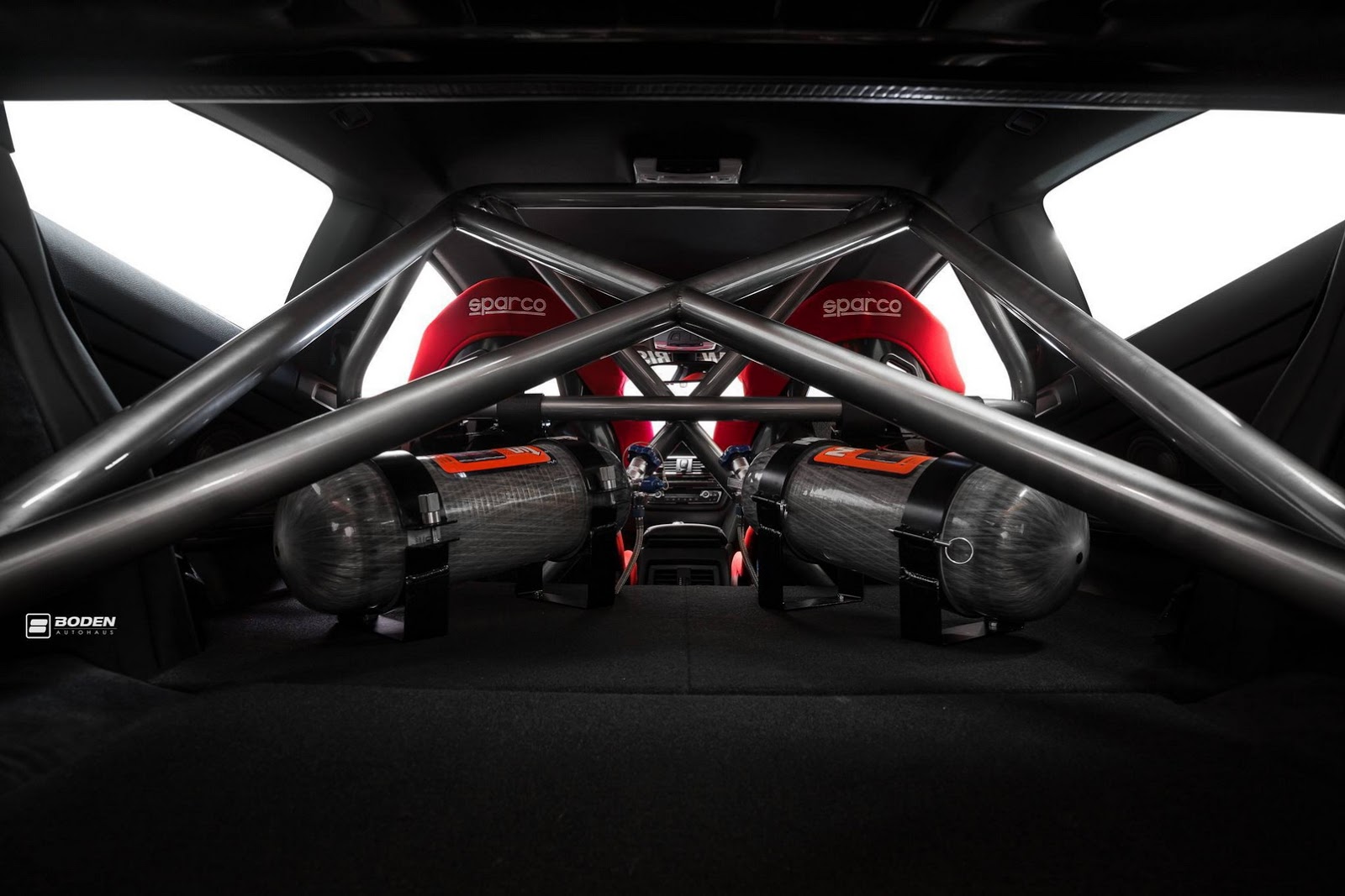 Aside from the livery, Pirelli P Zero tires, extra carbon bits and a massive rear wing, this car also comes with a pair of Nitrous tanks and a roll cage, just in case the kit itself didn’t look hardcore enough.