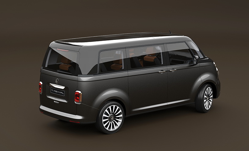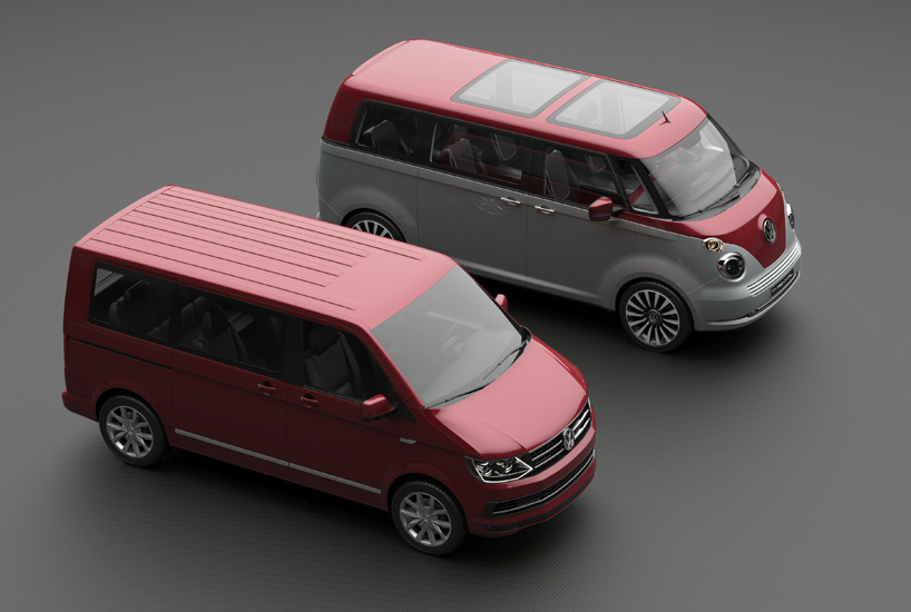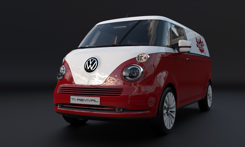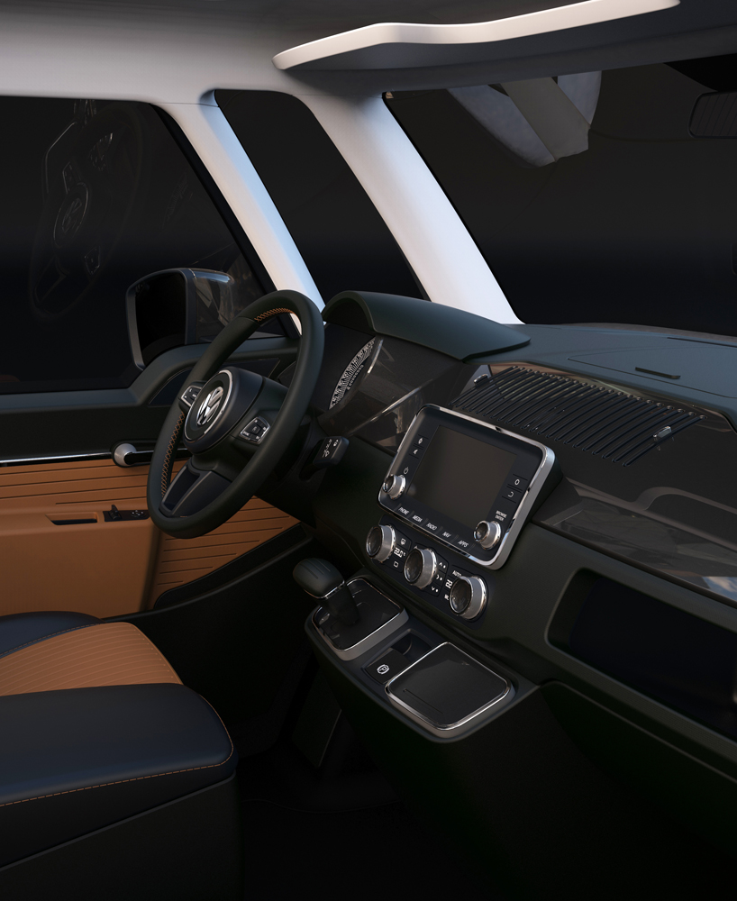 “The T1 Revival Concept pays homage to this first series of Volkswagen commercial vehicles, designed on the current VW Transporter T6 platform, with a wheelbase that has been extended by 7cm,” he says. “While there are clear references to the original model, the new concept doesn’t aim at mimicking the T1 forms of over 65 years ago. Rather it tries to capture his unique personality, “translating” it into a contemporary language; with curved surfaces, rounded corners, circular headlights, chrome details and bicolor car paint.”