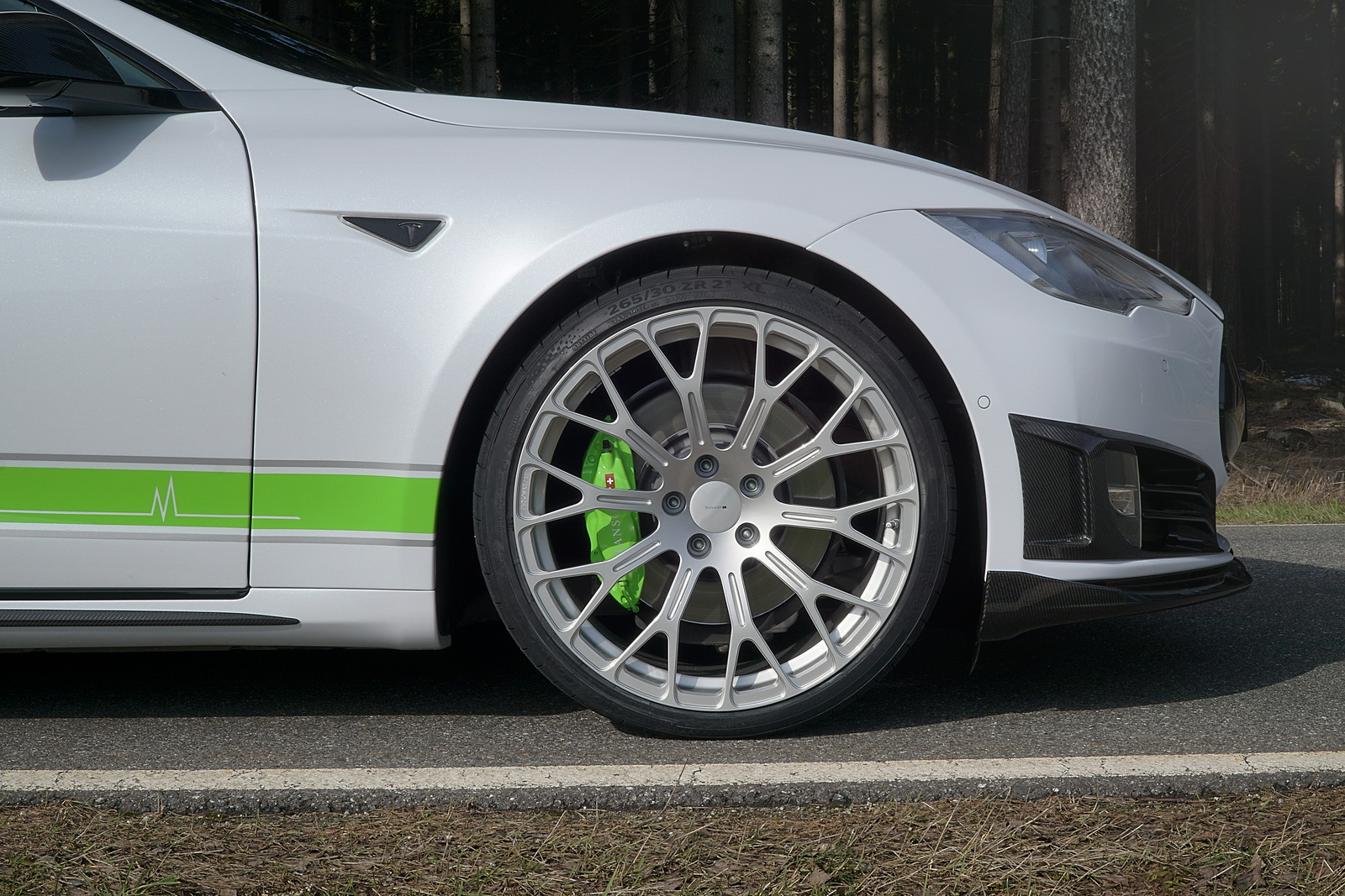 The tuner will offer a full range of add-on carbon parts for the bodywork of the Model S, including additions for the front bumper, a front lip, side skirts, a rear spoiler lip and a rear apron with a diffuser.