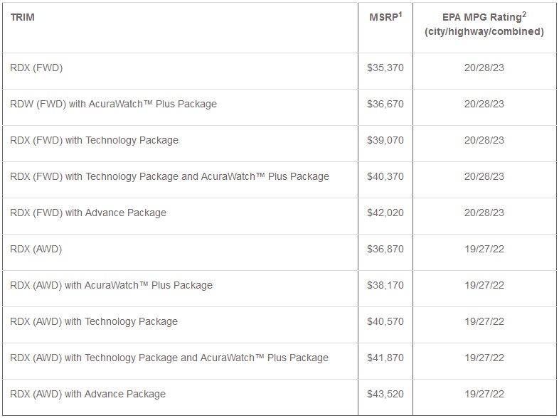 The Range-topper RDX with Advanced Package features grade-exclusive machined alloy wheel with grey painted surfaces, rain-sensing wipers, front fog lights, front and rear parking sensors, remote engine start, ventilated front seats and auto-dimming driver’s side mirror, along with standard AcuraWatch.