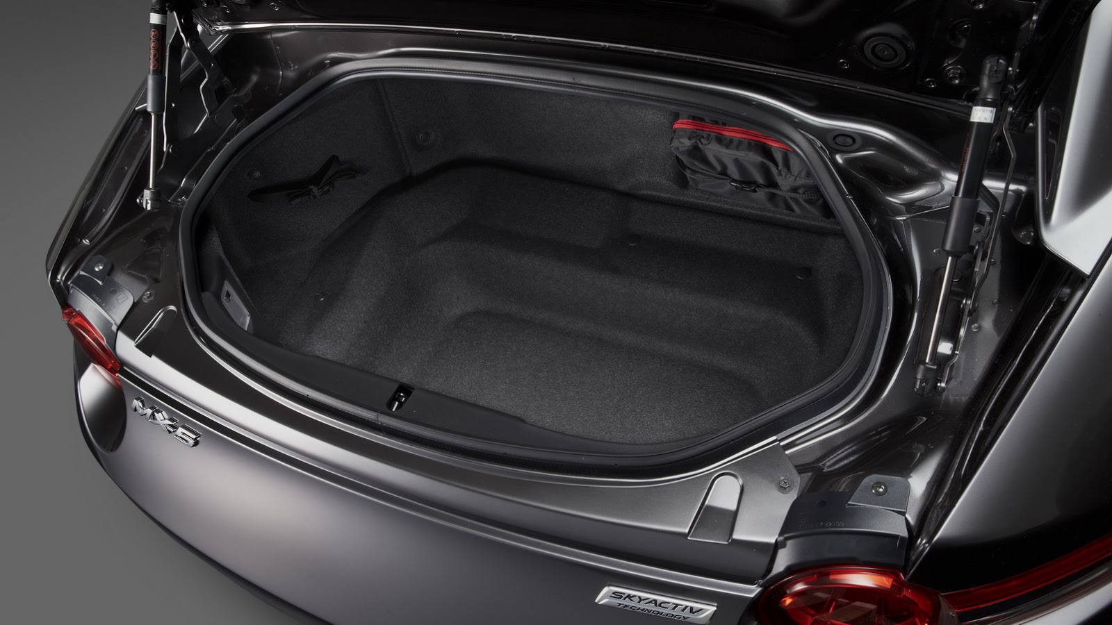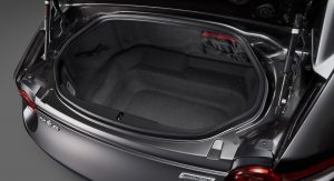 The same as its predecessor, say you? Ah, but the MX-5 Retractable Fastback is different. While the NC MX-5 had a fully retractable top, the ND employs a much more complicated mechanism that stores the center panel vertically behind the seats and a retractable rear window. This results in the roof not intruding on luggage space, which is nice because the 130 lt are abysmal to start with, and necessitates two buttresses.