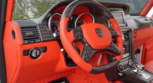 The interior, as usual, received the tuner’s unique print. The dashboard and the entire console area have been completely redesigned, while the in-house studio garnished the cabin with leather and carbon fiber accents.