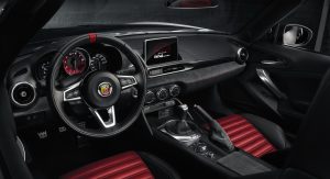 Weighing only 1,060 kg (2,336 lbs), evenly distributed front and rear for a perfect 50/50 split, the Abarth has a power-to-weight-ratio of 6.2 kg/HP, setting a new benchmark in the sporty roadster segment. Weight saving was an important factor while developing the car, as the engineers tried to shed every gram where possible to ensure a lightweight construction without damaging the balance of the car.