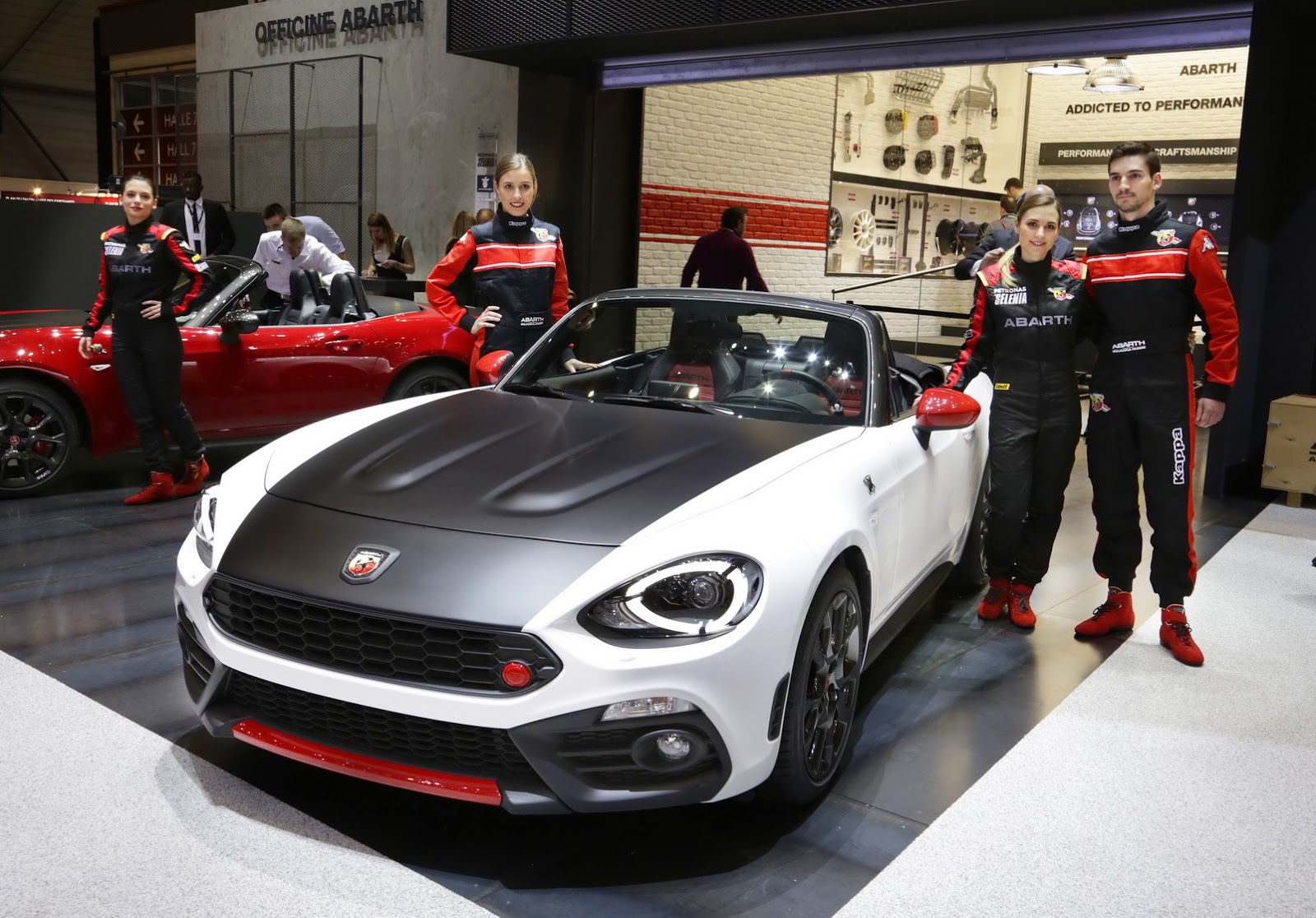 Weighing only 1,060 kg (2,336 lbs), evenly distributed front and rear for a perfect 50/50 split, the Abarth has a power-to-weight-ratio of 6.2 kg/HP, setting a new benchmark in the sporty roadster segment. Weight saving was an important factor while developing the car, as the engineers tried to shed every gram where possible to ensure a lightweight construction without damaging the balance of the car.