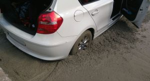 Fortunately, there was a happy ending to this story as nearby workers quickly came to the rescue and managed to pull the car out before the concrete had dried all around it – try explaining that to your insurance company. We do however hope that the owner of the car found the nearest carwash and cleaned the wheels and the underside thoroughly – in order to avoid further damage.