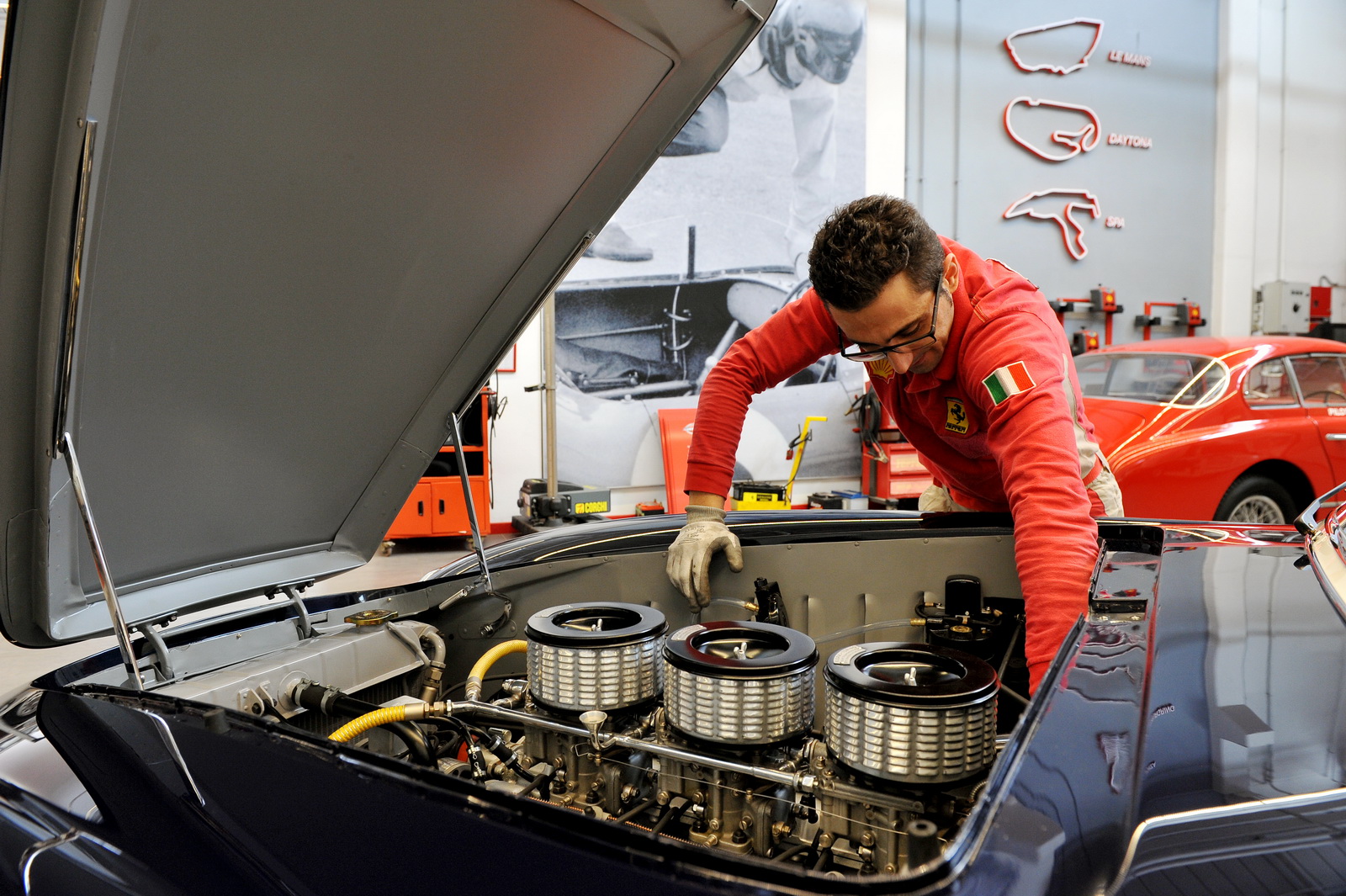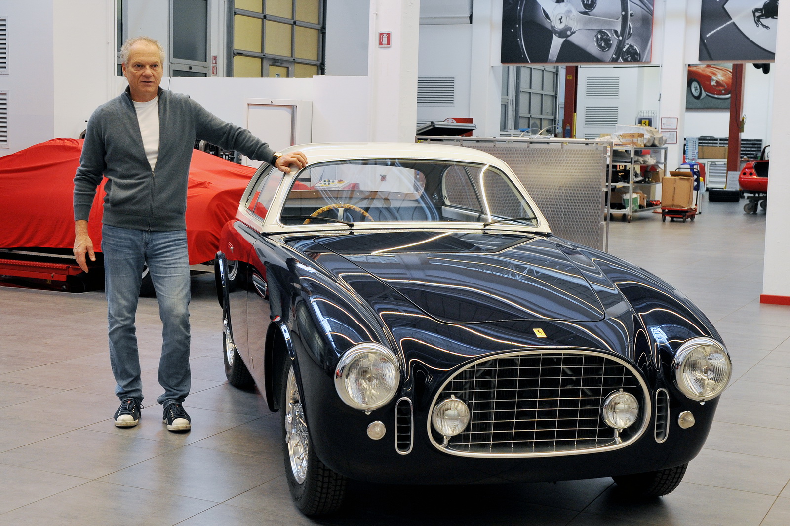 The vehicle has received a completely new interior, after the team had to examine all Ferraris of its kind built in the early 1950s, due to missing documentation, to ensure that it will remained true to its original design. On the outside, the classic Ferrari now sports a two-tone blue and white livery and work has been performed under the hood too, where its engine has been fully reconditioned.