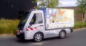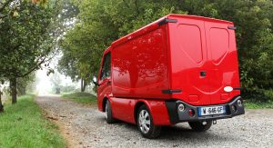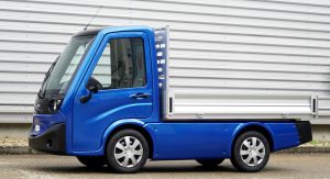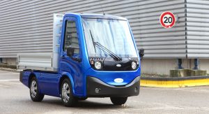 It uses an electric motor and battery that allow a range of up to 75 miles (120 km) and a top speed of up to 25 mph (40 km/h). The vehicle’s payload is 1,400 pounds (635 kg).