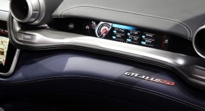 Ferrari’s other card was another special Tailor Made version of the roadster, inspired by the 250 GT Berlinetta SWB. It features a Grigio Scuro livery and a deep red transverse racing stripe, along with black diffuser with red fences, chrome tailpipes and a Heritage Bordeaux leather interior.