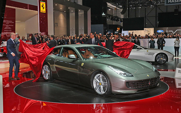 Completing Ferrari’s lineup at the Geneva show are the Argento Nurburgring 488 GTB, with a Nero Stellato roof, and F12 Berlinetta in Rosso Berlinetta livery, with Cuoio leather interior.