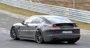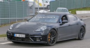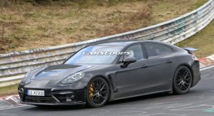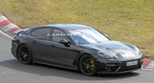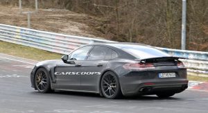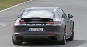 Not a leak, a press release or any such thing yet. Just a new Panamera testing at the Nordschleife without any camo save for the film around the taillights that is redundant as it doesn’t really hide their shape.