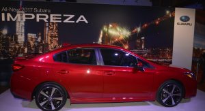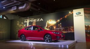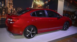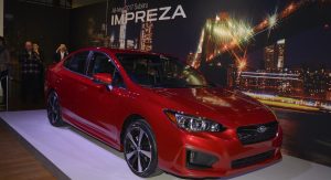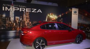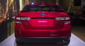 The 2017 Impreza is the first production model from Subaru to sit on the automaker’s newly developed Global Platform that will form the base for most of their next-generation models. It’s larger than the car it replaces, with the wheelbase extended by 25mm (1 in.), the overall length by 41mm (1.6 in.) and the width by 38mm (1.5 in.), though its height has been reduced by 10mm (0.4 in.).