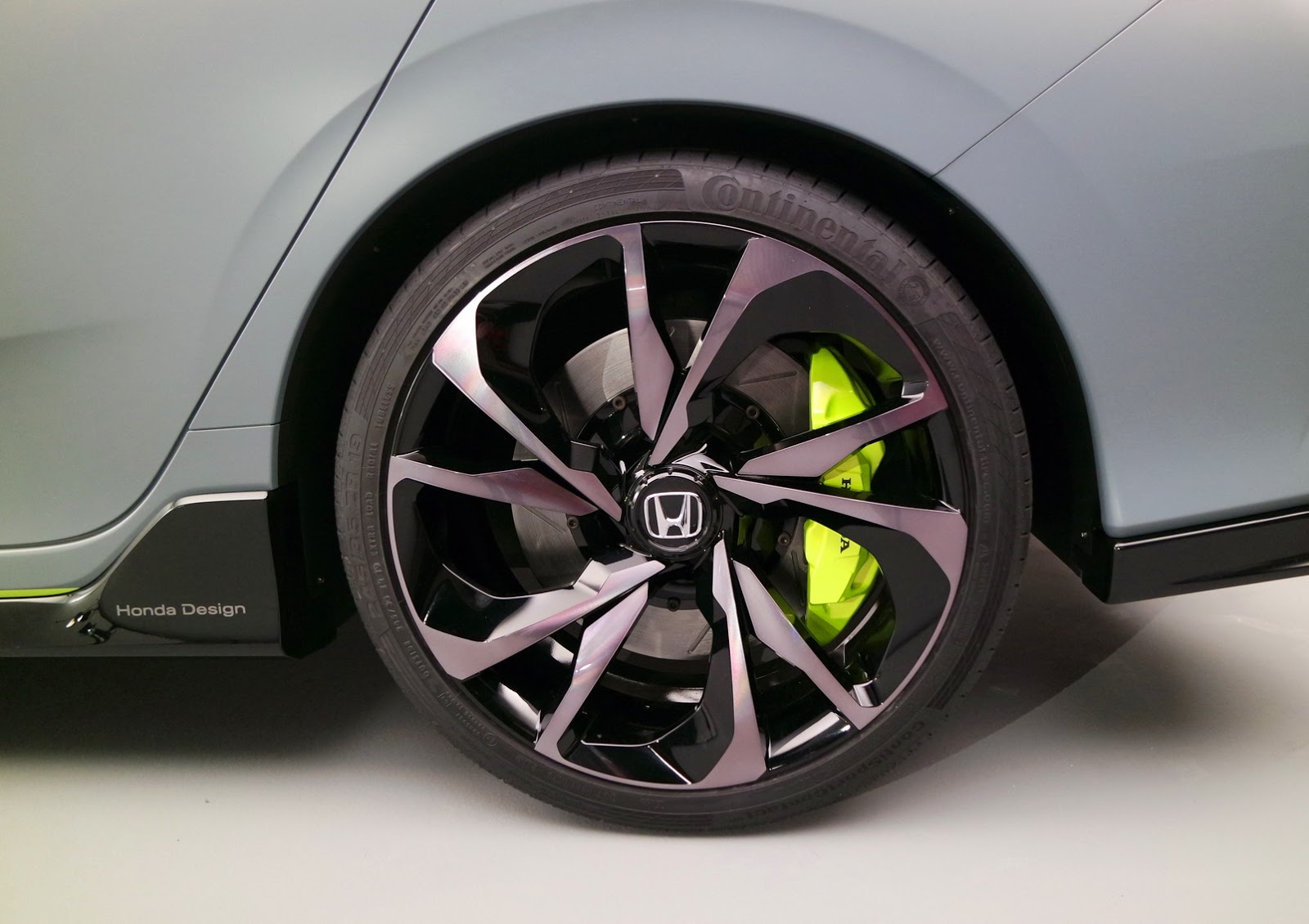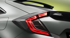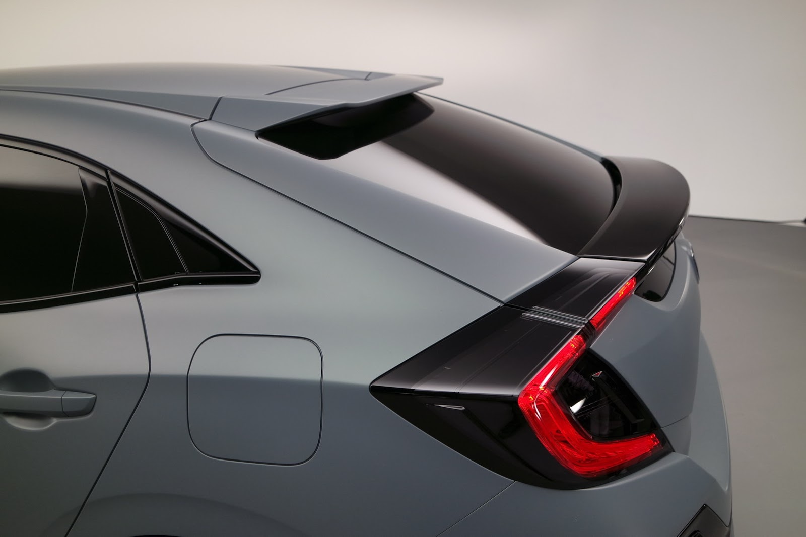 The rear of the car features distinctive C-shaped LED lights and a bumper design that incorporates angular creases and vents meant to showcase an overall more aggressively-styled compact car than we were normally used to seeing from Honda.