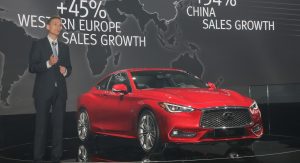 The new Q60 coupe is Infiniti’s third European debut and it comes after a world premiere made two months ago, in Detroit. A new lightweight 3.0-liter V6 twin-turbo engine, from the VR30 family, is offered in Europe in the high-performance 405 PS (399 HP) version, with standard AWD. The car will go on sale on the continent in the second half of 2016.