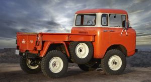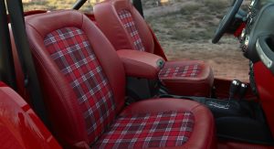 The modern incarnation of the FC150 pays tribute to a true American workhorse. Underneath its gorgeous skin there’s a 2005 Wrangler chassis modified to accept a Dana 44 front axle, Dana 60 rear axle and 17-inch white steel wheels wrapped in 33-inch BF-Goodrich Mud-Terrain T/A KM2 tires.