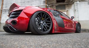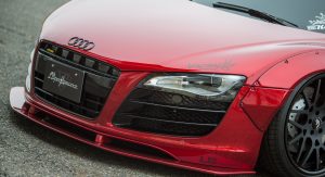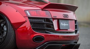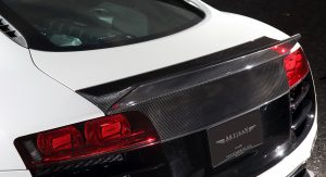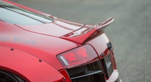 Composed of hand-finished moldings, it makes the R8 look like a racer and is available in either Carbon Fiber or Glass-Reinforced Plastic (GRP). Both offerings are identical in appearance, but the carbon fiber one can be commissioned “naked”, that is sans paint, which can open new possibilities to a wide array of customization options.