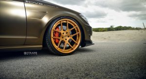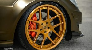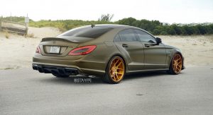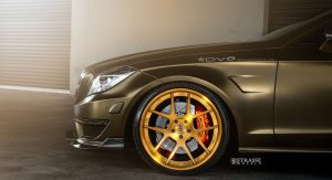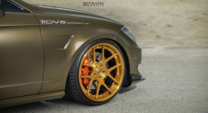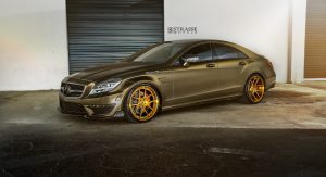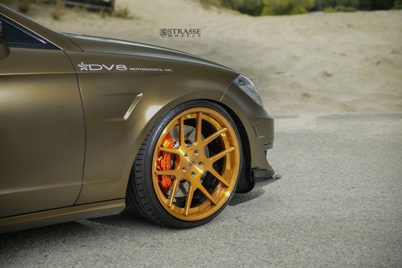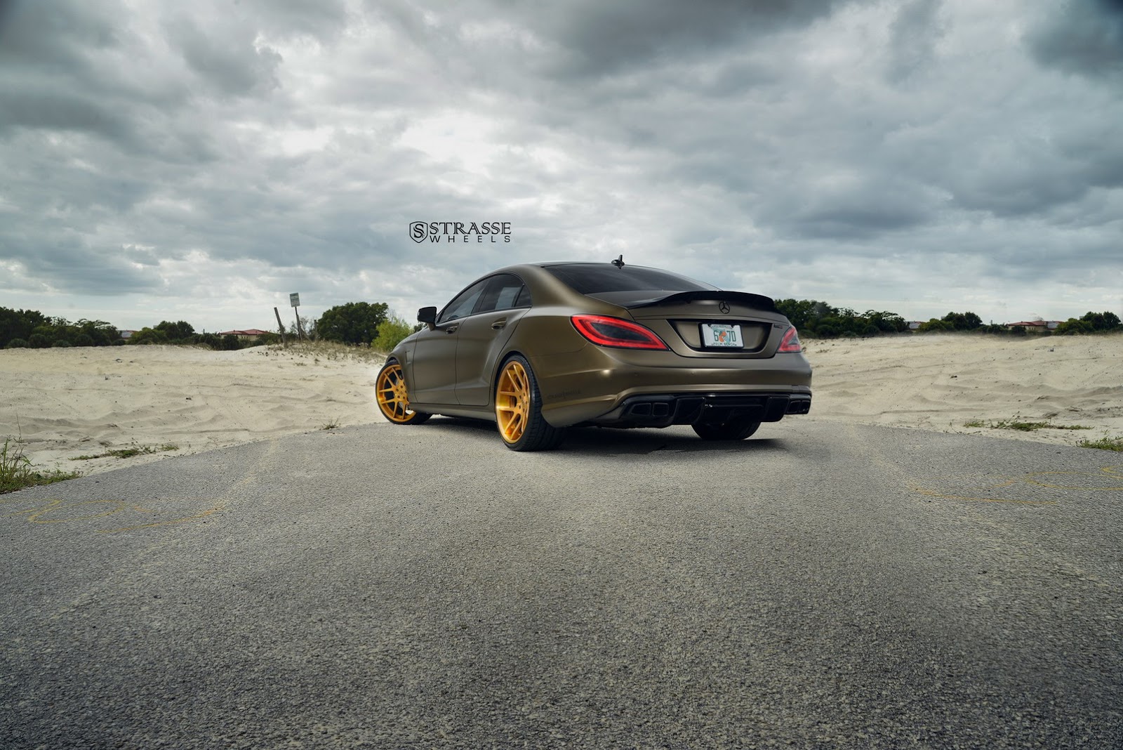 Strasse Wheels are using a Mercedes-Benz CLS63 AMG to showcase their SM5 Deep Concave wheels. Not just any CLS63 AMG, one they describe as a ‘Bronze Masterpiece’.