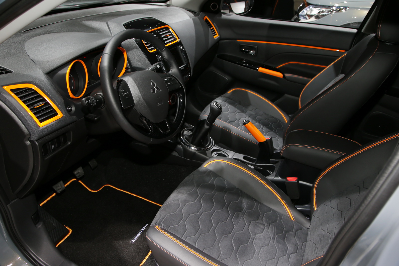 In addition, both cars come with mesh inner grilles, skid plates on the front, and roof boxes for carrying extra equipment; the L200 GEOSEEK sports working lights and hand holds fitted to the roof rails, while the ASX GEOSEEK obtains LED fog lamps, but other than that, the automobiles are exactly like the stock variants. The cabins were revised as well, coming in black with orange highlights and seats finished in a combination of mesh and suede-like fabrics