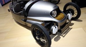The Morgan EV3 has a 46kW electric motor to drive the single rear wheel, which takes juice from a 20 kWh lithium-ion battery. The total driving range promised is around 240 km (150 miles), while zero to 100 km/h (62 mph) will be completed in 9 seconds and top speed stands at 145 km/h (90 mph). A sales date and production details have yet to be announced.