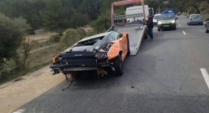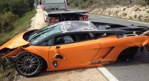 Leaving all puns aside, what we’re left with is a crashed example of the limited edition super sports car produced by Lamborghini before the Huracan meant anything. The images posted by GTBoard reveal a beat up Gallardo Bicolore, whose glamorous orange/black finish is adorning the road..