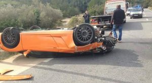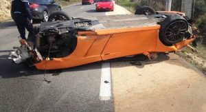 There is no information on how the four-wheel drive, V10-powered machine ended up on its roof, except that it happened somewhere in France, but the photos do reveal extensive damage to the body work, on both ends. The left rear suspension is missing, along with the 19-inch wheel, wrapped in Pirelli P Zero rubber, but the cockpit seems to have stayed in one piece, minus its top, which sits lower than usual, on the driver’s side.