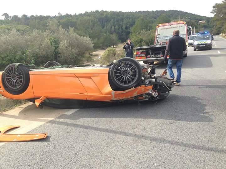 Leaving all puns aside, what we’re left with is a crashed example of the limited edition super sports car produced by Lamborghini before the Huracan meant anything. The images posted by GTBoard reveal a beat up Gallardo Bicolore, whose glamorous orange/black finish is adorning the road..